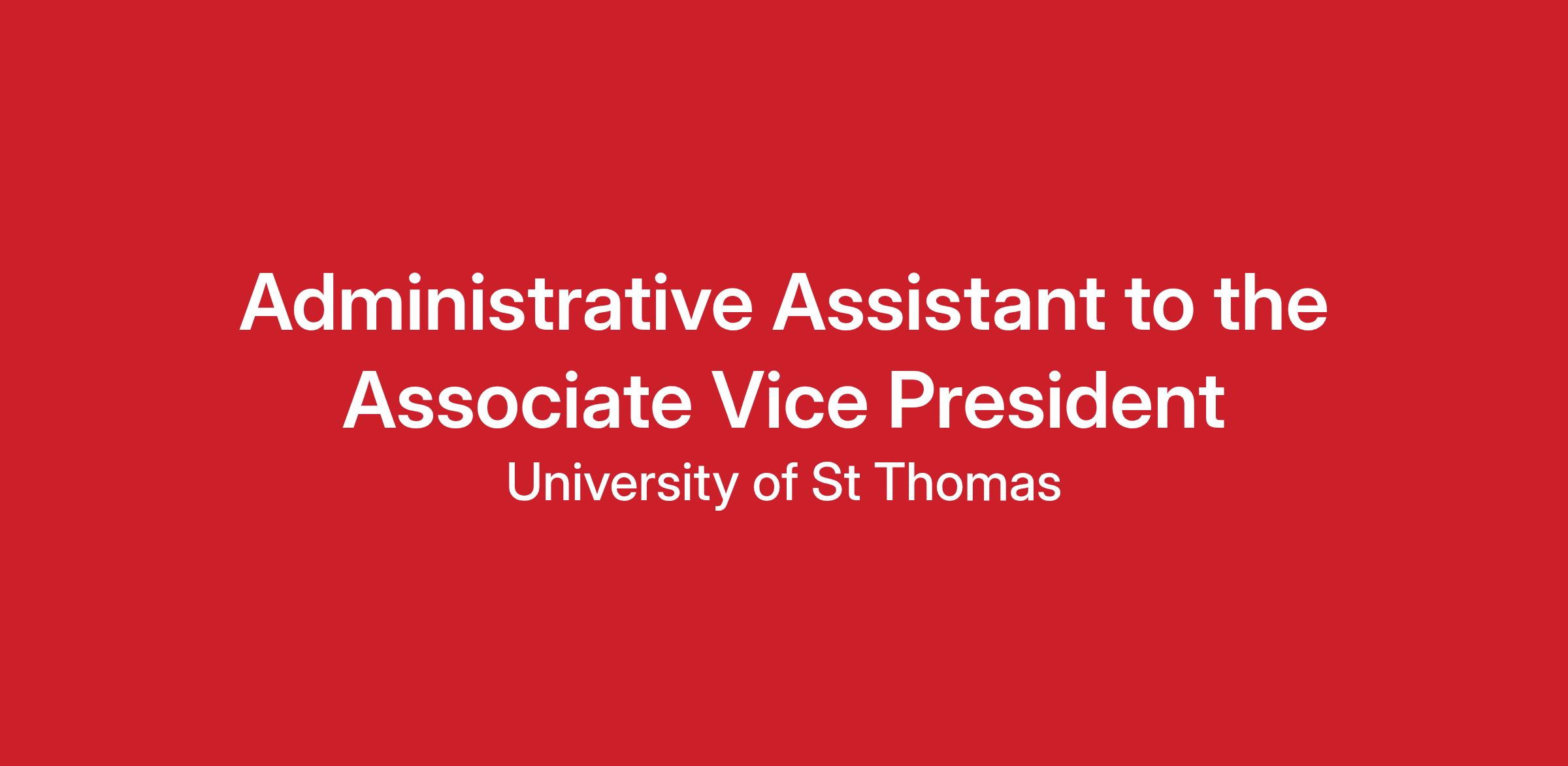 The University of St. Thomas invites qualified candidates to apply for an Administrative Assistant to the Associate Vice President (Administrative Assistant III) position within University Advancement.