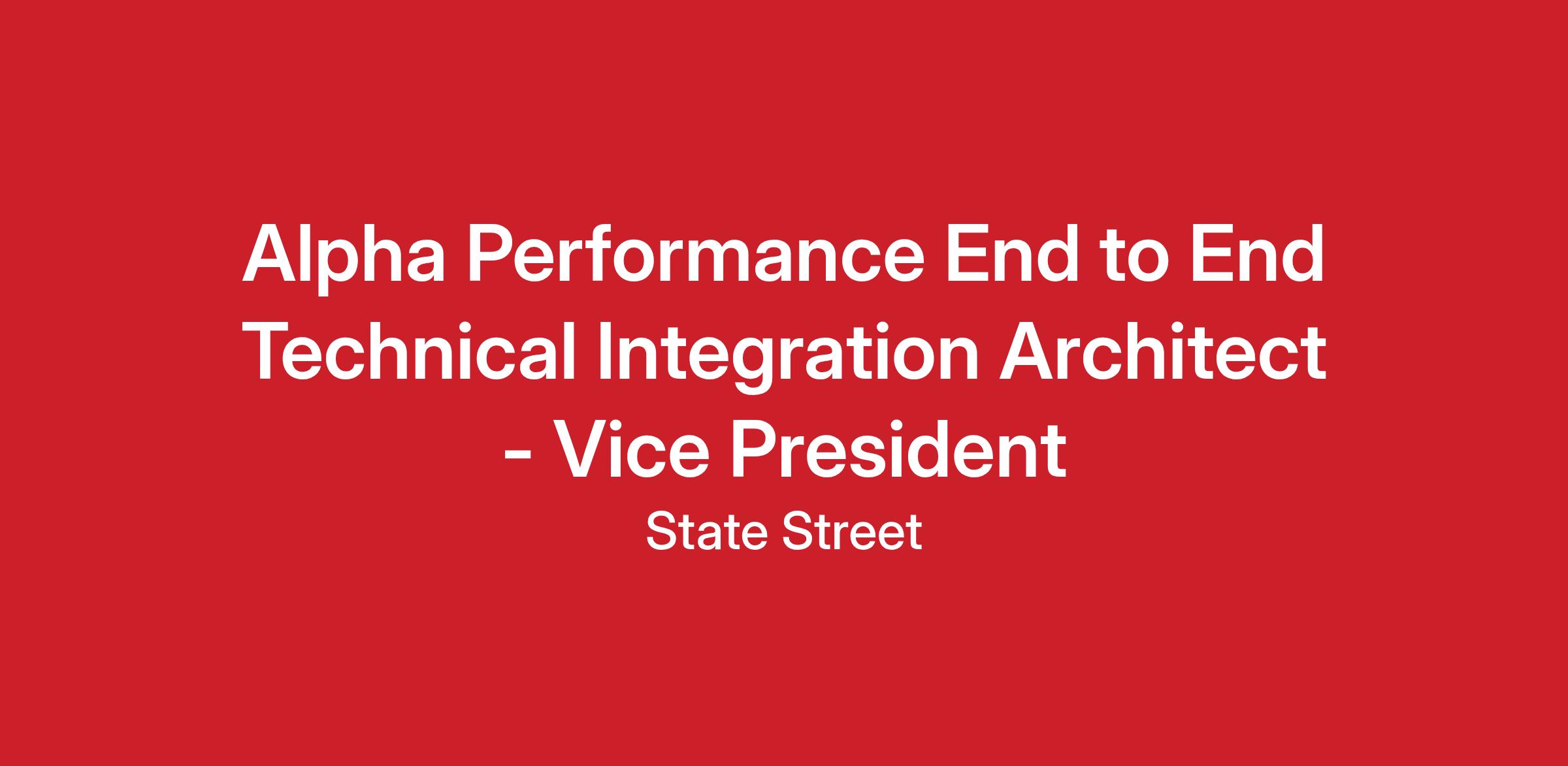 State Street Alpha is looking to bring on an Alpha Platform End to End Solution Architect to support solution architect role for strategic Alpha initiatives and deliver new services, existing services and capabilities across the Alpha ecosystem.