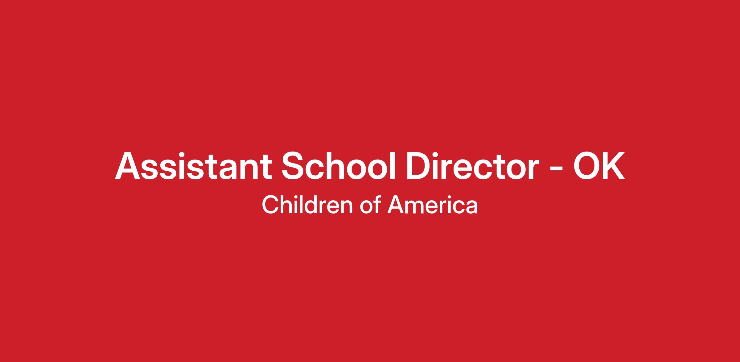About Children of America (COA) We are a special recipe of people, principles and pride that makes the COA rich in diversity and strength. Our Assistant School Directors are responsible for carrying out the daily tasks and duties of management, including leading a staff of talented educators and the execution of our educational programming for all programs, Infant care through School Age. You will work directly under a School Director in leading teachers and support staff while working together in a supportive environment where you are encouraged to grow in your field and share your passion for early childhood education. Additionally, our company culture invites you to bring your whole self to work, because it is your unique attributes, perspectives and backgrounds that make us a stronger team. Our program serves preschool children 6 weeks - 12 years of age. Programs include, Infant, Toddler, Preschool, Pre-K, Before and After Care and Summer Camp.