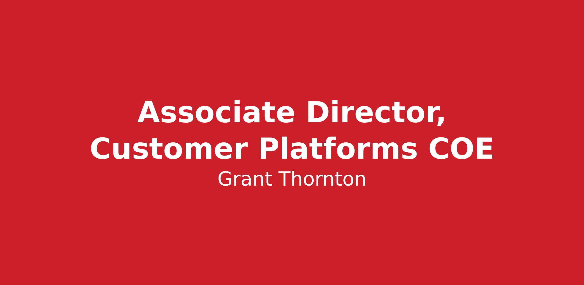 DescriptionGrant Thornton is seeking a Customer Platforms COE Associate Director to join the team in Chicago, IL.Â