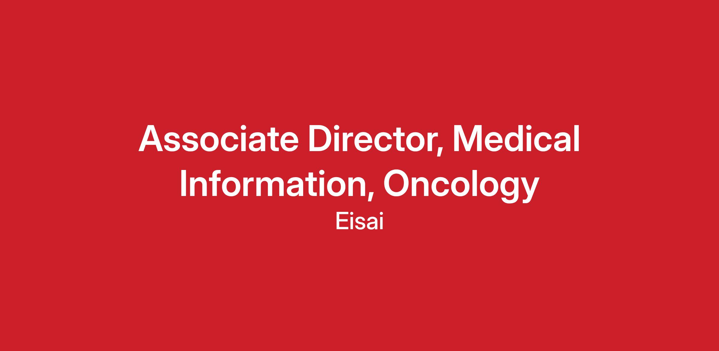 The annual base salary range for the Associate Director, Medical Information, Oncology is from :$164,600-$216,100 Under current guidelines, this position is eligible to participate in : Eisai Inc. Annual Incentive Plan & Eisai Inc. Long Term Incentive Plan.Final pay determinations will depend on various factors including but not limited to experience level, education, knowledge, and skills.