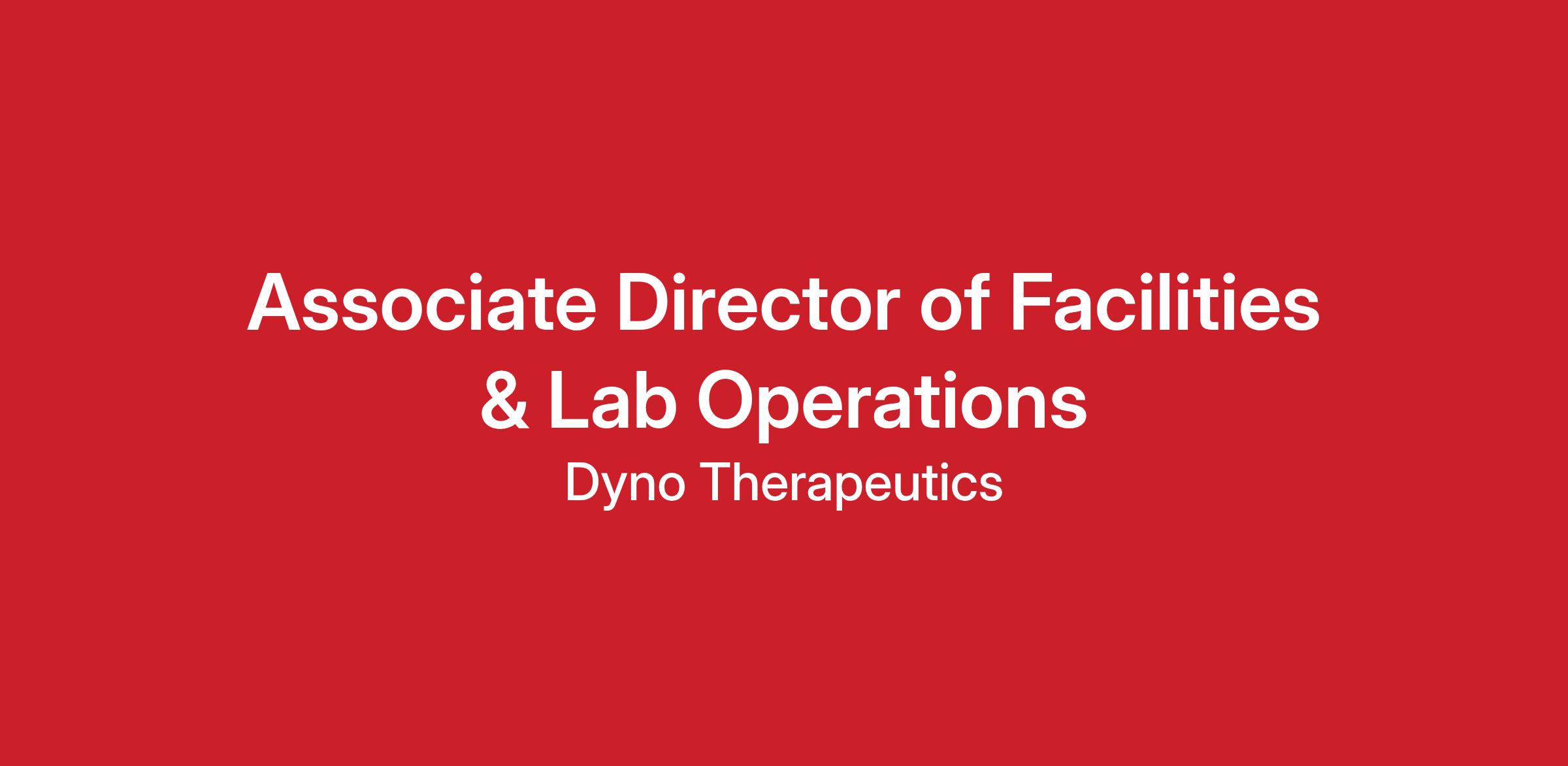 Associate Director of Lab and Facilities Operations. Seeking a highly collaborative laboratory and facilities operations leader with proven experience in the biotech/pharma industry. This key role requires a commitment to driving efficiency, streamlining operational processes, and serves as a critical partner to our R&D team to ensure peak productivity.