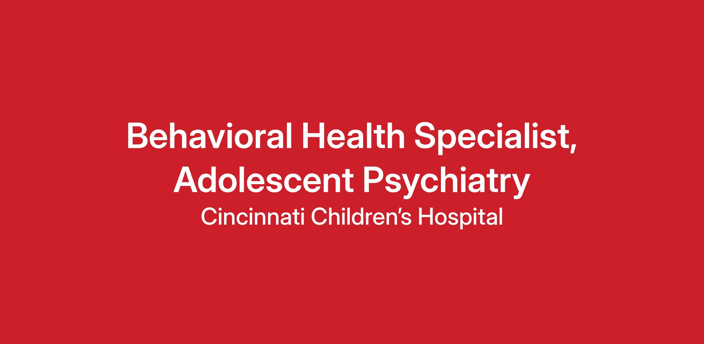Working as a Behavioral Health Specialist (BHS) at Cincinnati Children’s Hospital Medical Center, you will enjoy: