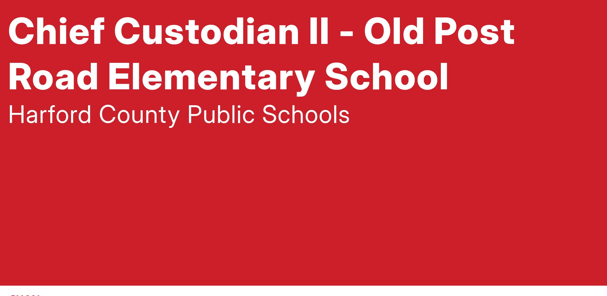 This is a full-time twelve-month position. Salary range based on Grade 6 of the FY 2024-2025 AFSCME Salary Schedule for Twelve Month AFSCME Employees. Starting Salary: $ 45,519– Maximum Earnings Potential $ 63,982. Those who are entering or returning to employment with Harford County Public Schools will begin on Step 1. Full salary schedules can be found at the bottom of the Current Vacancies webpage https://www.hcps.org/departments/humanresources/vacancies.aspx HCPS offers an expansive benefits package including individual and family medical, vision, dental, life insurance, retirement savings, pension, paid time off, and more. For a complete list of benefits, please visit the Employment Benefits section of the Human Resources webpage: https://www.hcps.org/departments/HumanResources/Default.aspx For more information on holidays and paid time off, please refer to the Holidays and Leave Provisions sections of the AFSCME Negotiated Agreement: https://www.hcps.org/boe/collectivebargaining.aspx FLSA: Non-Exempt |