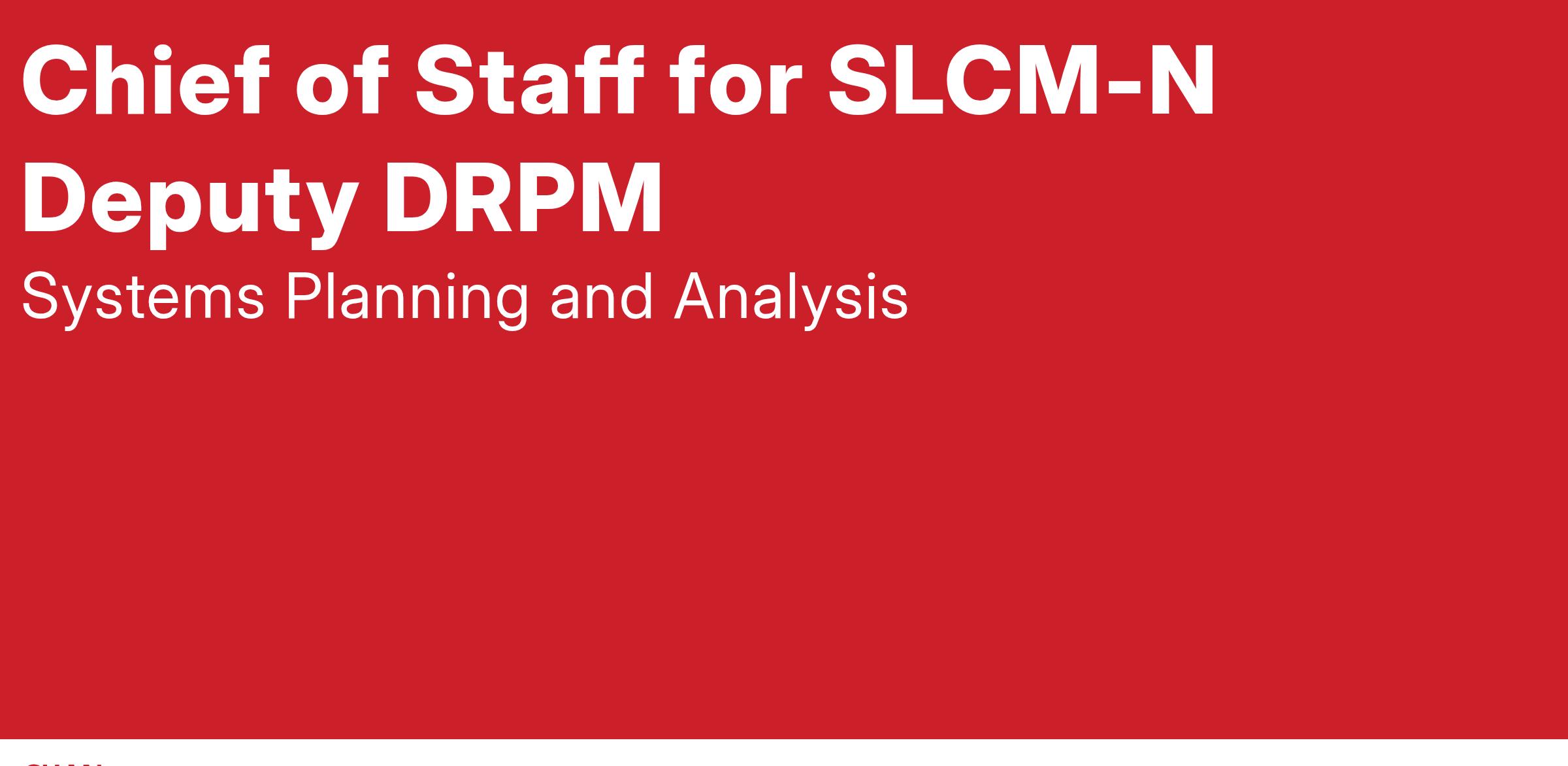 SPA has an immediate need for a Chief of Staff to the Deputy Direct Reporting Program Manager (DRPM) of the Nuclear-Armed, Sea-Launched Cruise Missile (SLCM-N) Program.
