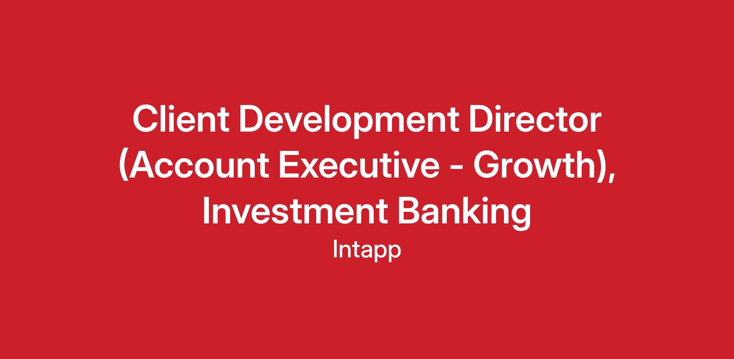 Intapp is looking to hire a highly consultative Client Development Director (Account Executive - Growth) to join its team. This individual should be a proven and polished C-level solution seller. It is imperative that the candidate be viewed by customers as a credible executive-level advisor and consultant as well as a business development executive.