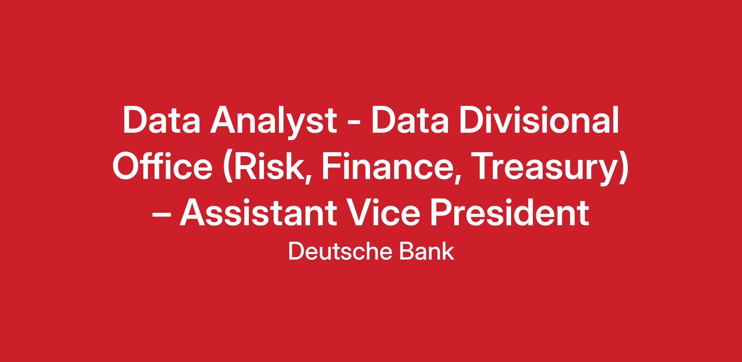 Job Title: Data Analyst, GSA Data Divisional Office – Risk, Finance and Treasury