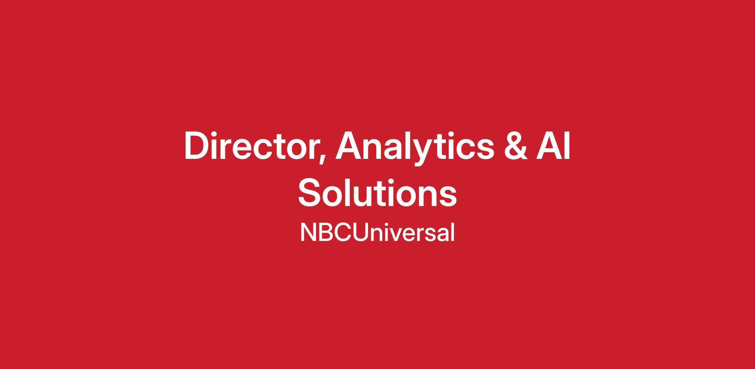 NBCUniversal is seeking a Director, Analytics & AI Solutions to join the Studio Distribution Technology & Operations organization within Universal Entertainment Technology. This role is responsible for defining and executing the analytics product strategy and AI solutions that enable commercial decision-making across Studio Distribution.