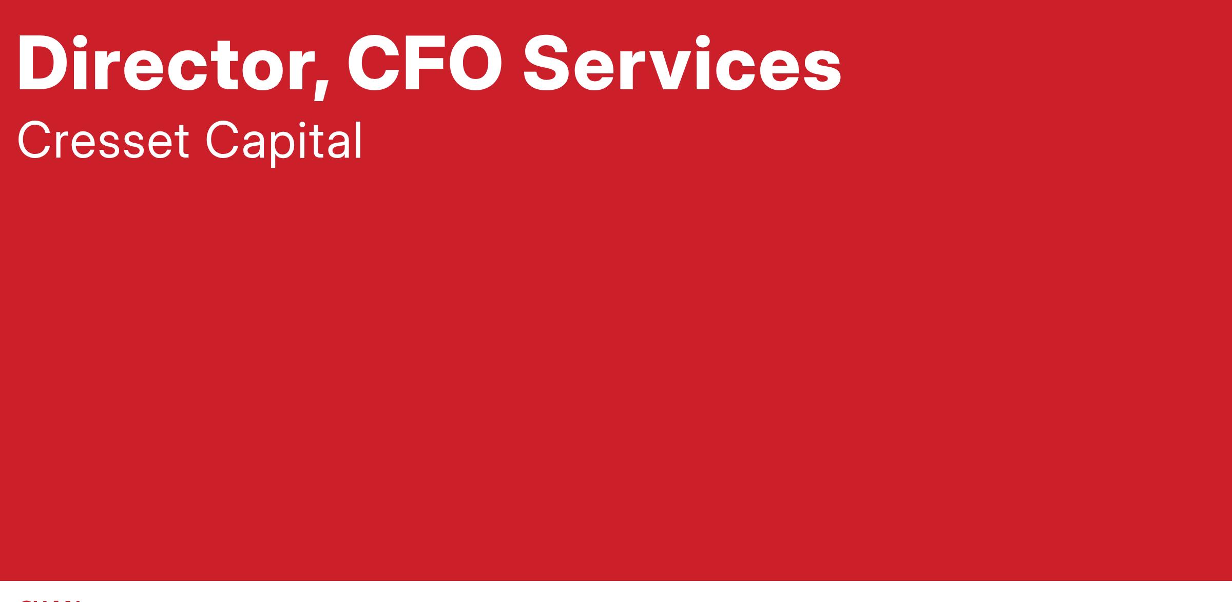 Cresset is seeking a Director, CFO Services, who will operate within our CFO Services team. This position is hands-on, requiring experience in financial reporting, cash flow analysis, bill payment including classification and recording of bank account and credit card details, and experience in bookkeeping including recording all transactions for a given entity, and production of customized financial reports for high-net worth families. Understanding of operational accounting, cash management, and payroll functions are important to success. This role will have direct interaction with Cresset Family Office clients serving the needs of high-net worth individuals, families, and business owners in a fiduciary capacity. This position will report directly to the Managing Director, Head of CFO Services.