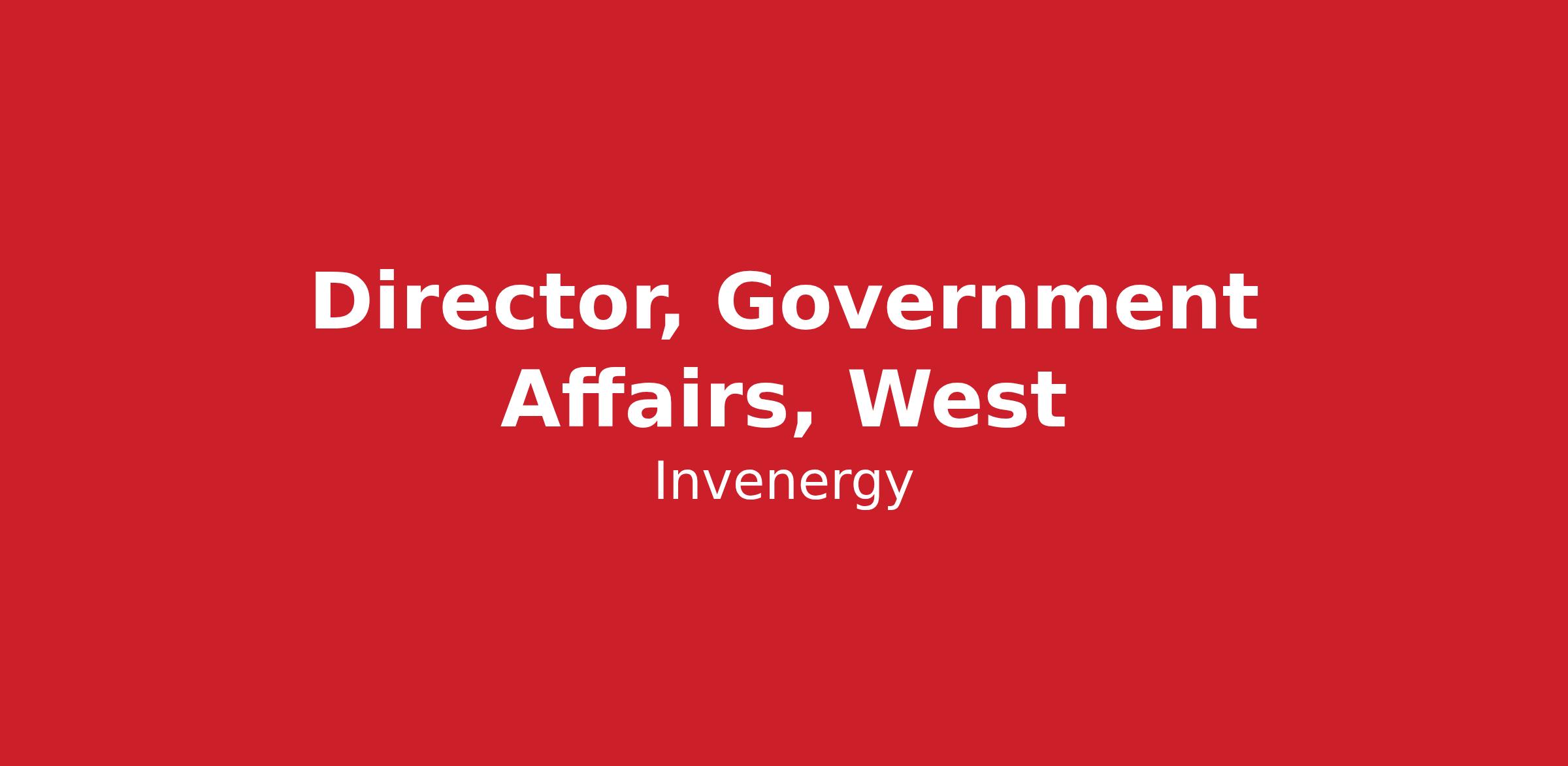 As a Director, Government Affairs – West, you will focus on Invenergy's government affairs activities, primarily in the legislative and executive branch, across western states (WECC and CAISO), and manage one direct report.