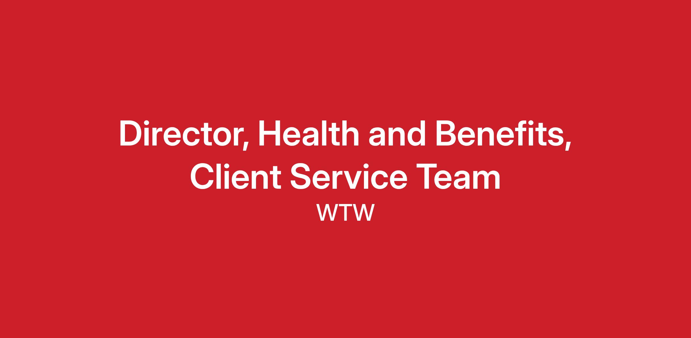 DescriptionAs a Health and Benefits Director, you will lead client engagements involving the design and management of the full array of health and benefits programs. You will drive the strategy and grow relationships with current clients by leveraging your expertise alongside WTW’s array of solutions and capabilities and will generate new business by participating in prospecting activities. You will have the opportunity to provide input into the evolution of the WTW Health and Benefits practice and to be a leader in the marketplace.