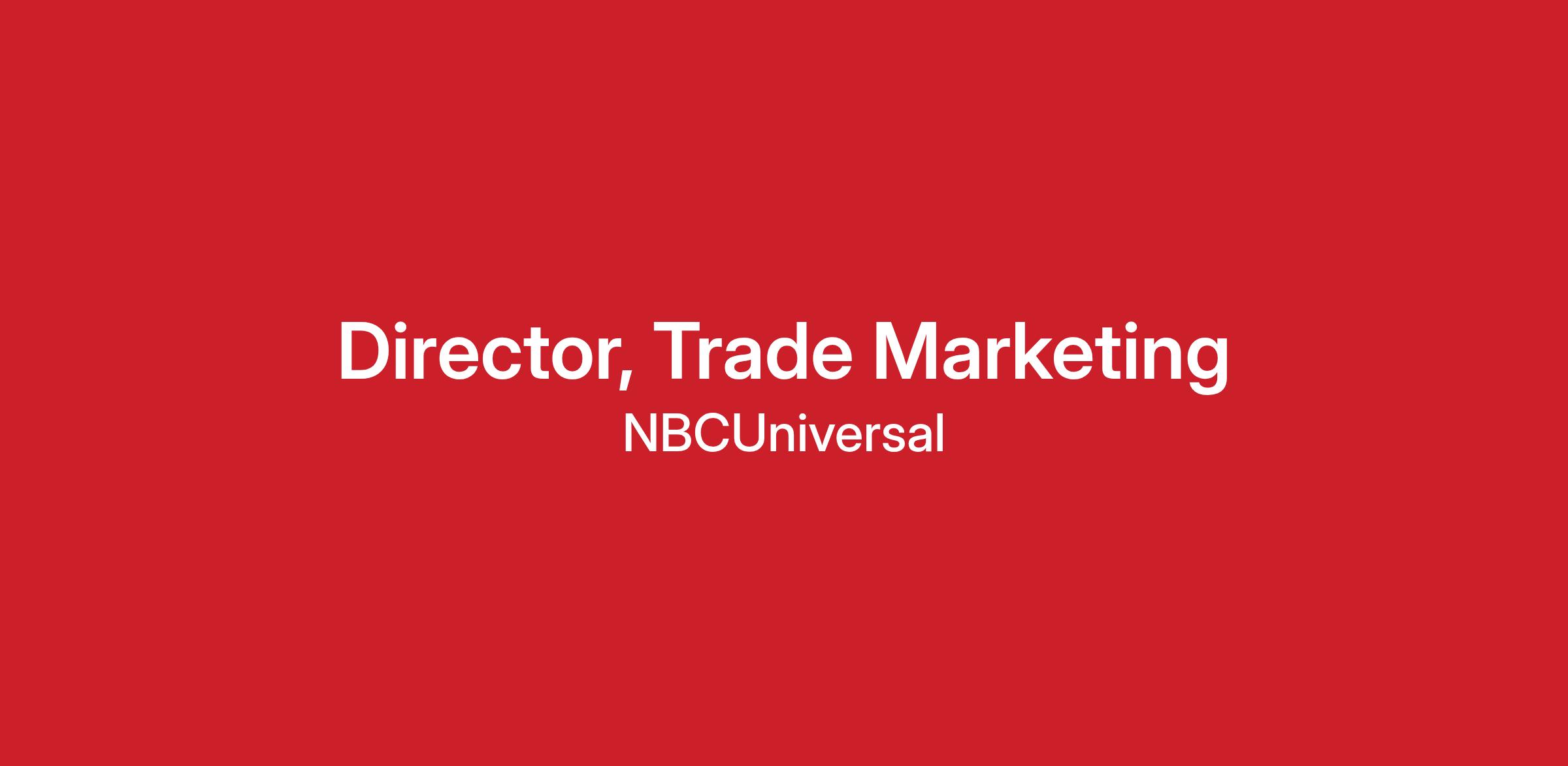 The Trade Marketing Director will lead strategic initiatives to generate marketplace demand for NBCUniversal’s advertising offerings, with a focus on agency, client, category, and portfolio-wide strategies. This role positions NBCUniversal as the industry’s most trusted media partner for driving ad sales revenue and maximizing media effectiveness for clients of all size