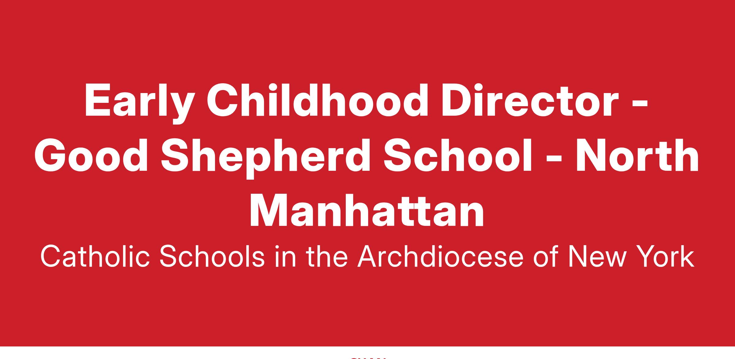Good Shepherd School, located in Manhattan, is inviting committed and talented early childhood educators to lead its Prek for All and 3K for All program. The Early Childhood (EC) Director will be part of the school leadership team and report to the school principal. The EC Director will work closely with the staff in the four UPK classrooms to provide high quality instruction, work closely with families and ensure a wonderful beginning of the educational journey of the 3 and 4 year old children enrolled in the program.