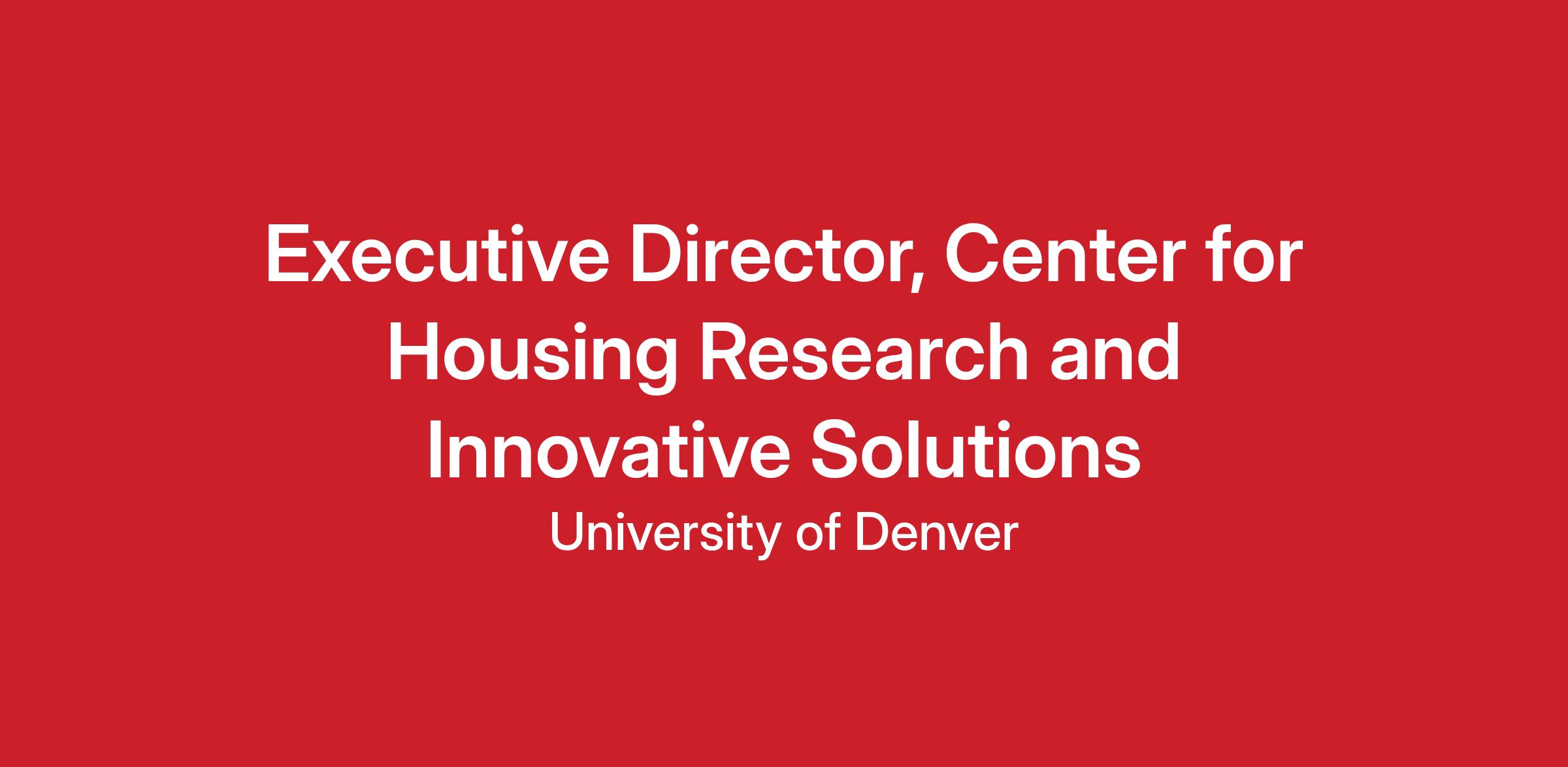 The University of Denver seeks to hire a distinguished scholar and/or practitioner with a deep understanding of housing markets, practice, research, and policy to serve as the first Executive Director of a new interdisciplinary Center for Housing Research and Innovative Solutions. The Executive Director will join existing DU faculty from law, business, public policy, and social work, as well as a new Center staff economist and legal fellow, to develop a strategic plan and to build out key new programs and projects. In addition to deep expertise in housing policy, industry practice and research, our ideal candidate must have a proven track record in fundraising, strategic planning, and organizational leadership, and be equipped to serve as a leading expert on housing research and policy on behalf of the Center and the University of Denver.