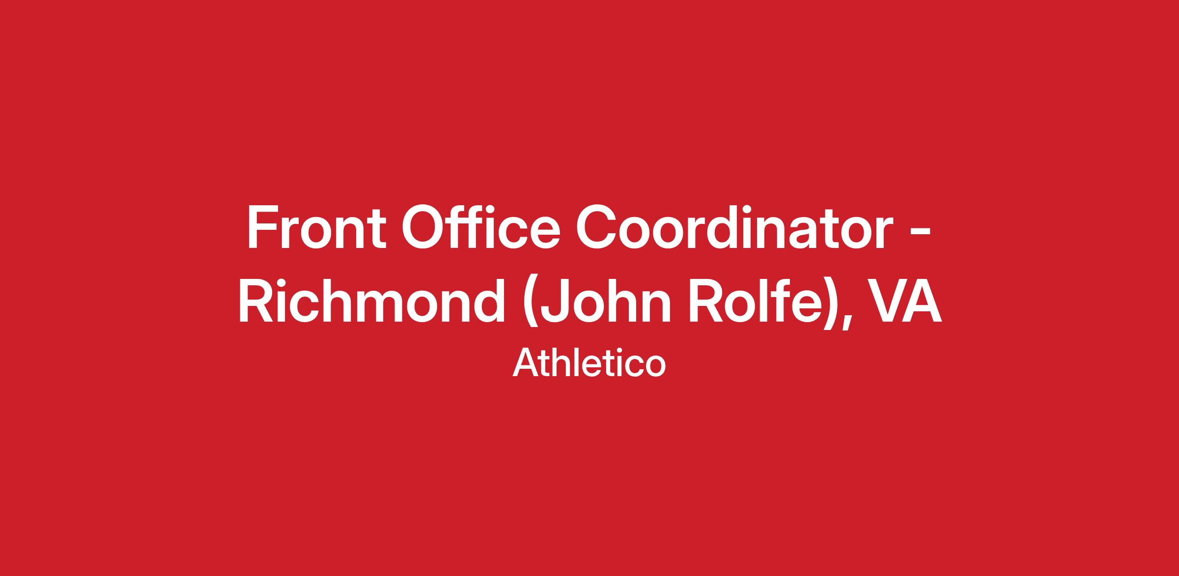 Front Office Coordinator - Richmond (John Rolfe), VA