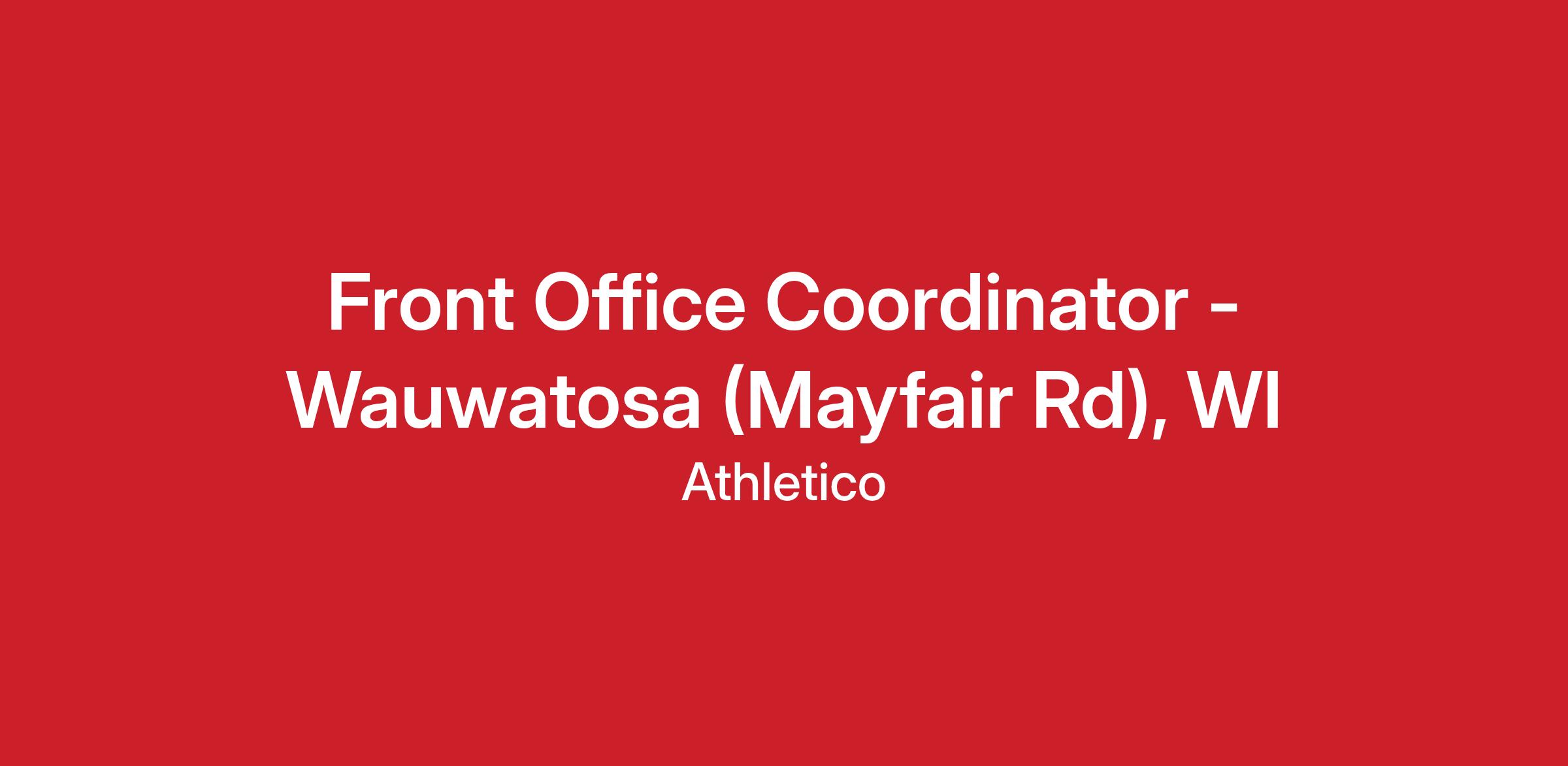 Front Office Coordinator - Wauwatosa (Mayfair Rd), WI