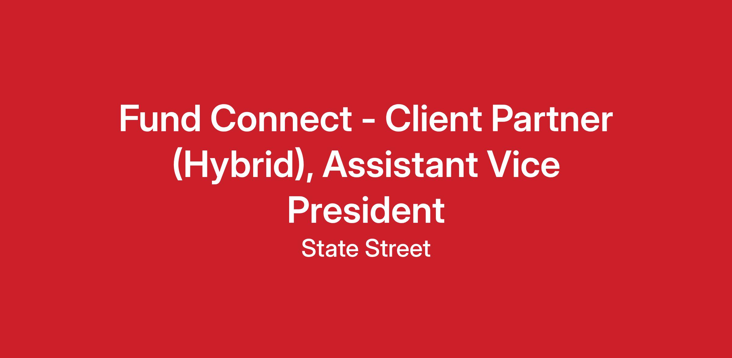 Fund Connect is looking for a Client Partner (AVP) reporting to the Head of Product Sales to join our team to ensure client success through strong engagement and exceptional service. You are responsible for managing your own book of client relationships - anticipating, understanding and addressing your clients’ needs on a day-to-day basis. You must also build strong relationships across the broader sales, operations, legal, compliance and other internal teams critical to the end-to-end client lifecycle, from initial contact, through on-boarding and beyond. With a consultative, solutions-oriented approach you will be expected to demonstrate initiative, energy, and superior networking skills to develop trust and accountability across both the existing client base and the State Street organization.