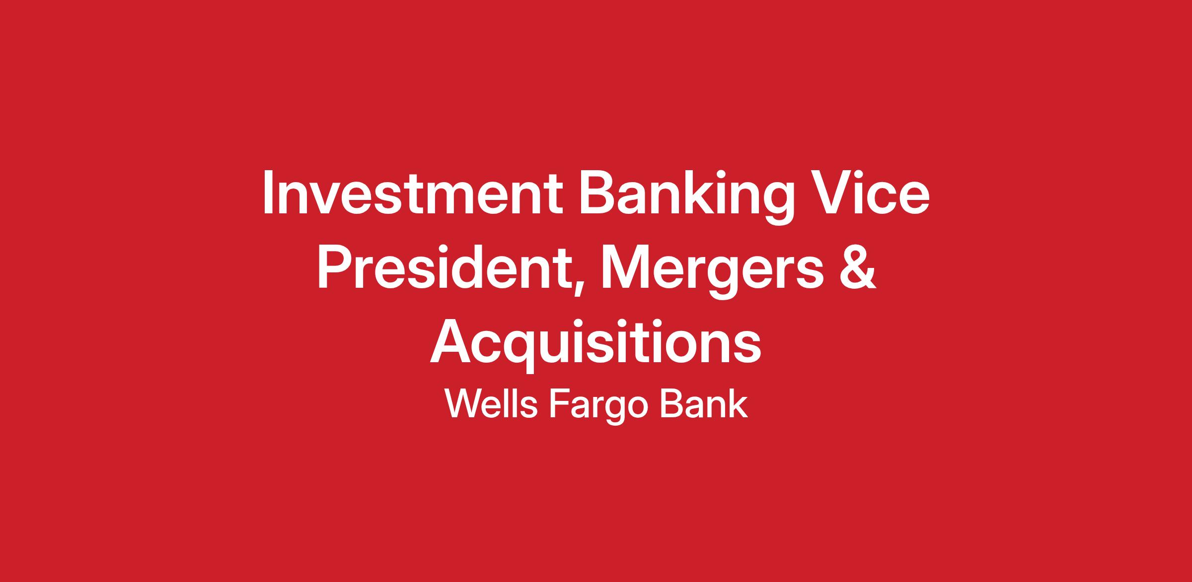 Wells Fargo is seeking an Investment Banking Vice President within our Mergers & Acquisitions group in New York City or Charlotte. In this role you will drive and support transaction execution across a variety of industry verticals including Consumer/Retail, Financial Institutions, Healthcare, Industrials, Power & Energy, Technology/Media/Telecom and Real Estate & Gaming.