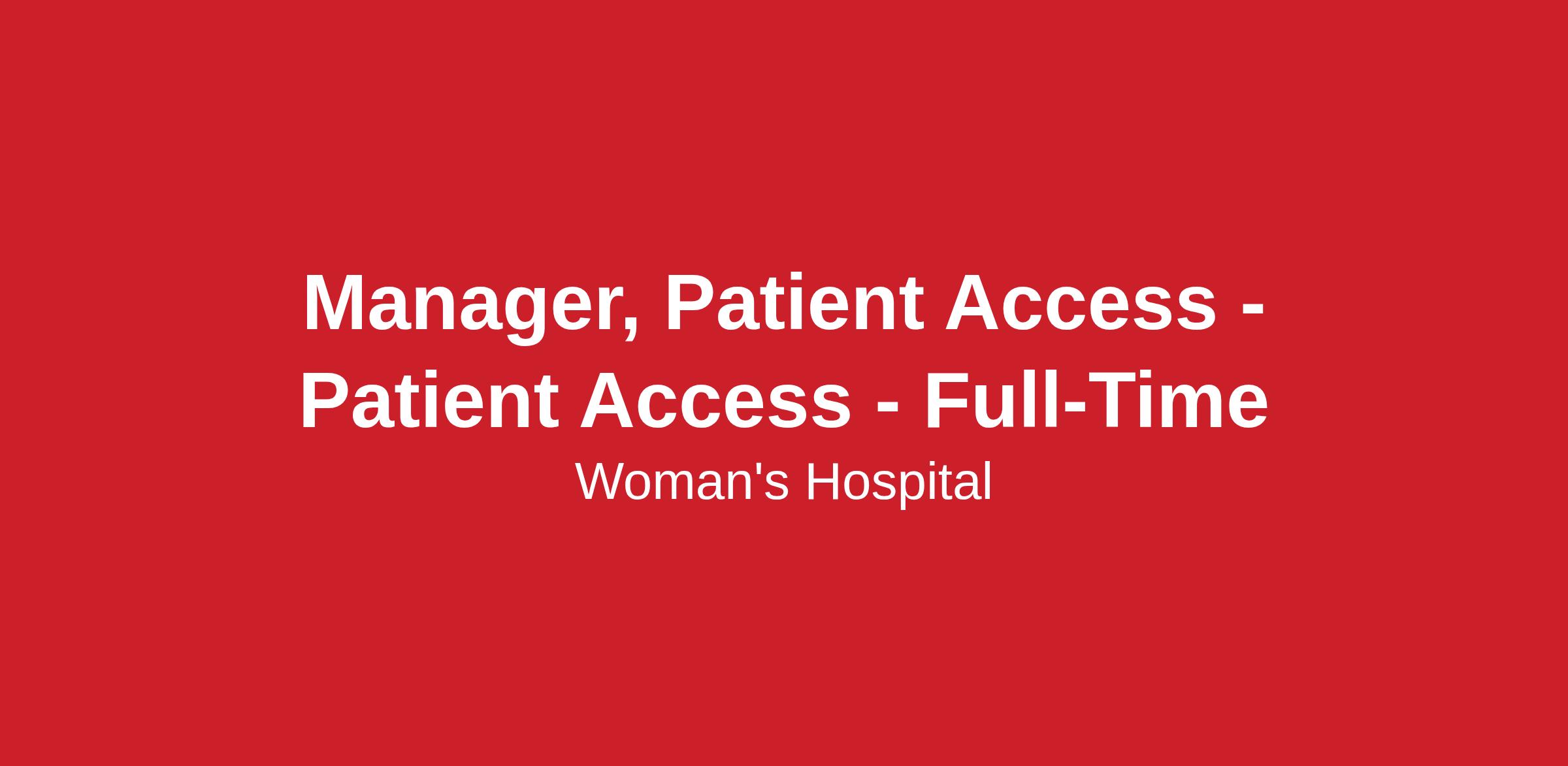 The Patient Access Manager manages the day-to-day activities of all patient access areas including: registration in pre-surgery center, admitting, assessment center, imaging/advanced imaging scheduling and registration, all lab registration areas, patient access coordinators, as well as other registration areas. Acts as registration and insurance resource for hospital staff.