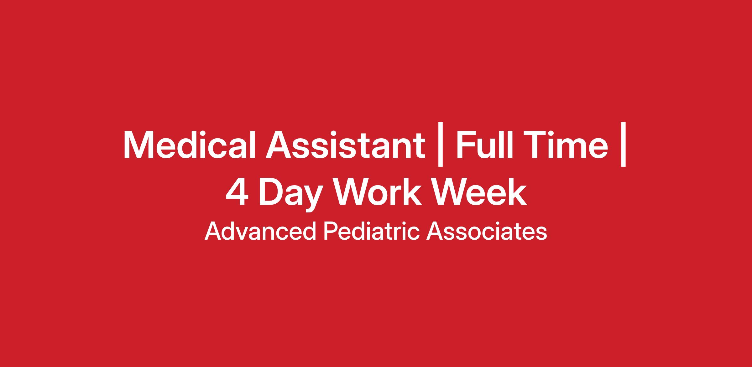 Advanced Pediatric Associates is hiring an experienced Pediatric Medical Assistant seeking a full-time (4-day work week) position. Will be responsible for all medical assistant duties, including, but not limited to: assisting health care providers with examining and treating patients, and maintaining standards of clinical policies and processes. Additional responsibilities include, but are not limited to, performing administrative and clerical tasks related to the provision of patient care, conducting quality controls, and assisting with supply and vaccine counts. Also responsible for understanding and using EPIC effectively according to APA guidelines. The ideal candidate will be a friendly and positive professional who will be able to perform patient care in a timely and efficient manner while adhering to all procedures and protocols.