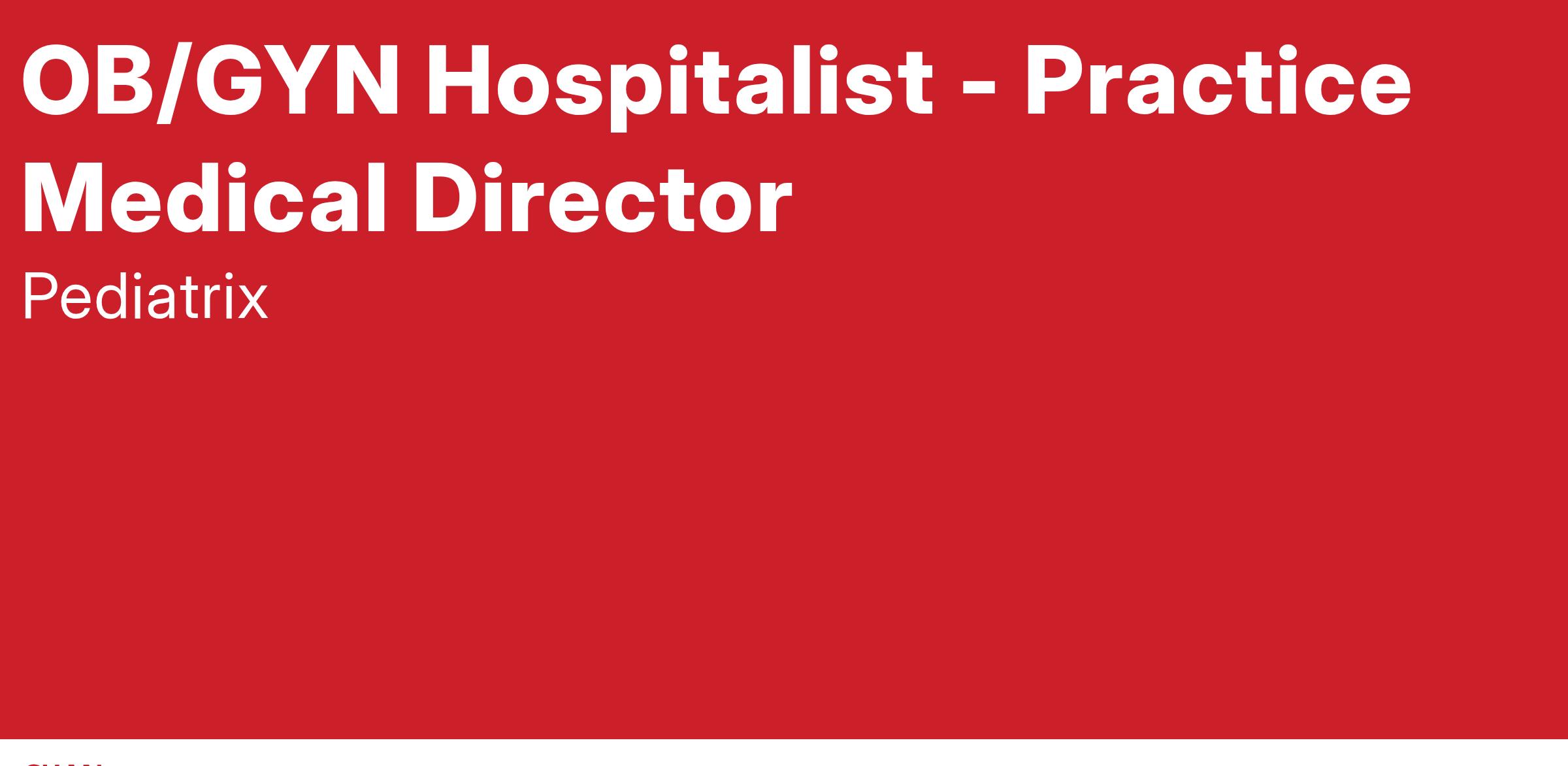 Ob/Gyn Hospitalist Medical Director - 6 Shifts Per Month - Leadership Development