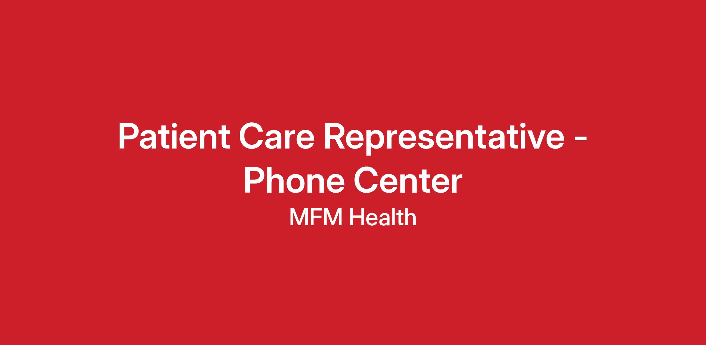 MFM Health is seeking enthusiastic, detail-oriented, and reliable candidates for our Patient Care Representative (PCR) role to support our Call Center. This position requires excellent verbal and written communication skills, computer proficiency, and exemplary customer service skills, with the abilities to multitask and work as a team. Medical office and Electronic Medical Record (EMR) experience are highly desirable.Β