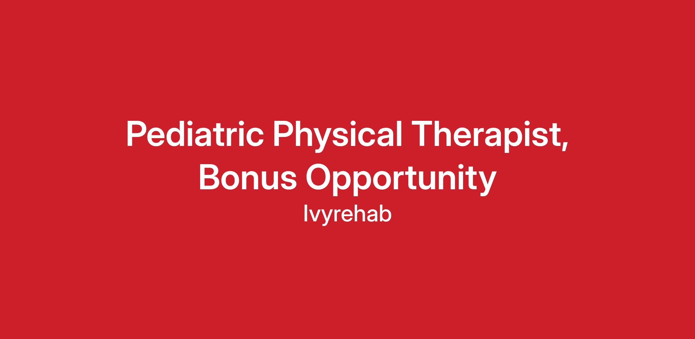 As an outpatient pediatric clinician, you will have the chance to work with many children from birth to age twenty-one. Our teammates are dedicated to the treatment of our young patients, providing individualized one-to-one attention and customized plans of care to meet your child’s needs. Parents and caregivers are encouraged to attend sessions so they can carry skills and home exercises into their child's daily life. Ivy's rewarding work environment allows multi-disciplinary collaboration and mentorship while maintaining autonomy and growth that is specific to each of our clinician's passions and expertise.Join Ivy Rehab’s dedicated team where you’re not just an employee, but a valued teammate! Together, we provide world-class care in physical therapy, occupational therapy, speech therapy, and applied behavior analysis (ABA) services. Our culture promotes authenticity, inclusion, growth, community, and a passion for exceptional care for every patient.