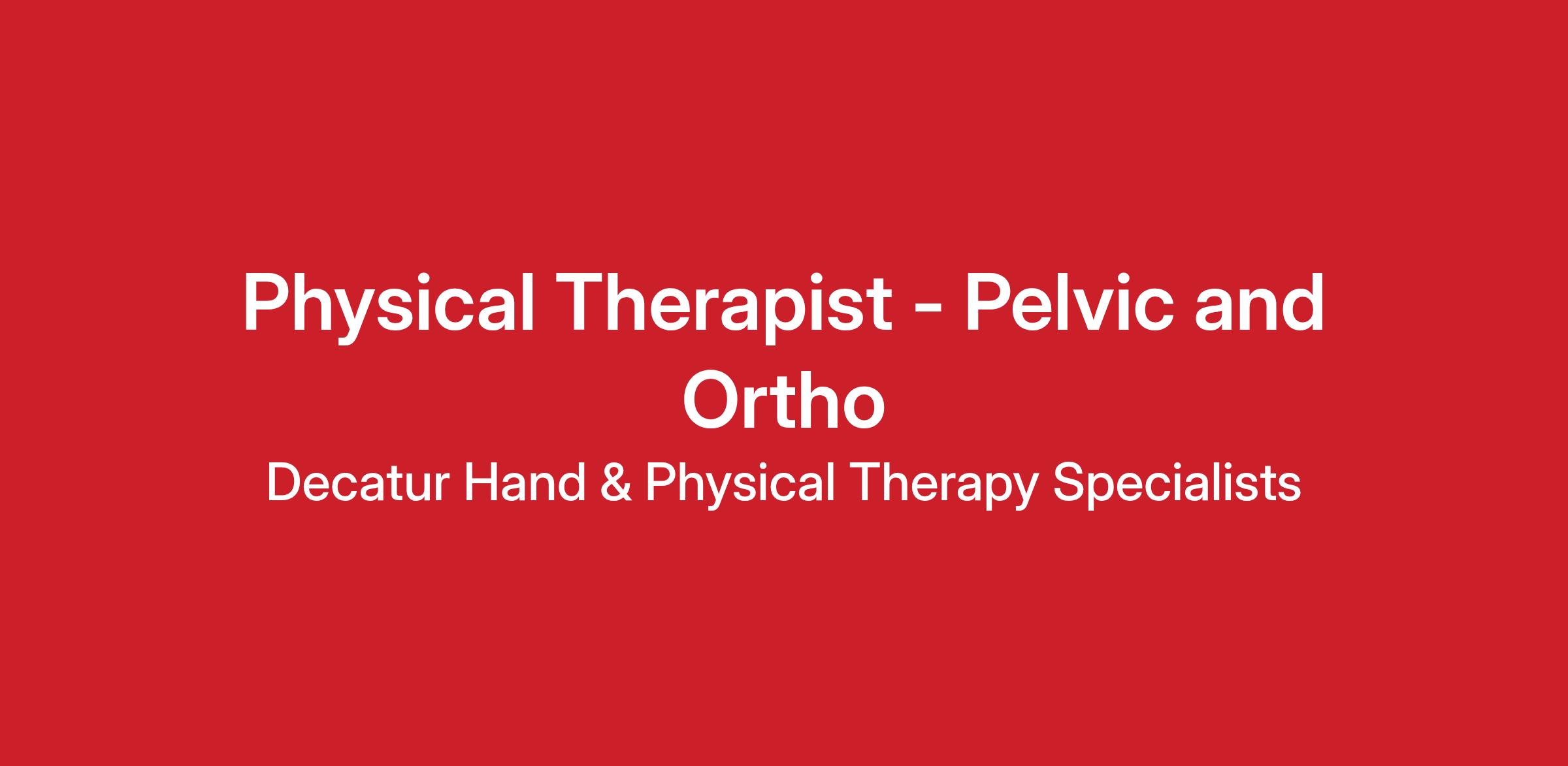Decatur Hand & Physical Therapy Specialists has an immediate opportunity for an energetic, skilled, and customer-focused Physical Therapist. This role is split between 3 days in orthopedics and 2 days in pelvic health, making it a great fit for someone looking for variety in an outpatient setting.