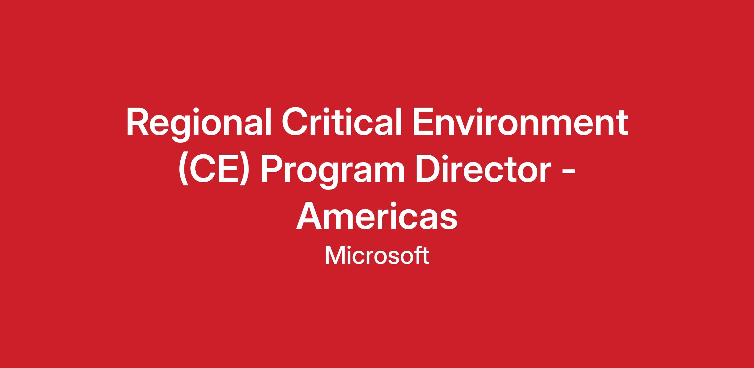 We are looking for a Regional Critical Environment (CE) Program Director - Americas to help provide strategic and operational leadership for Critical Environments across Microsoft’s Americas datacenter portfolio. This role is accountable for availability, safety, compliance, and operational excellence across a diverse, large‑scale footprint of datacenters while partnering closely with global teams to drive standardized processes, tooling, and governance.