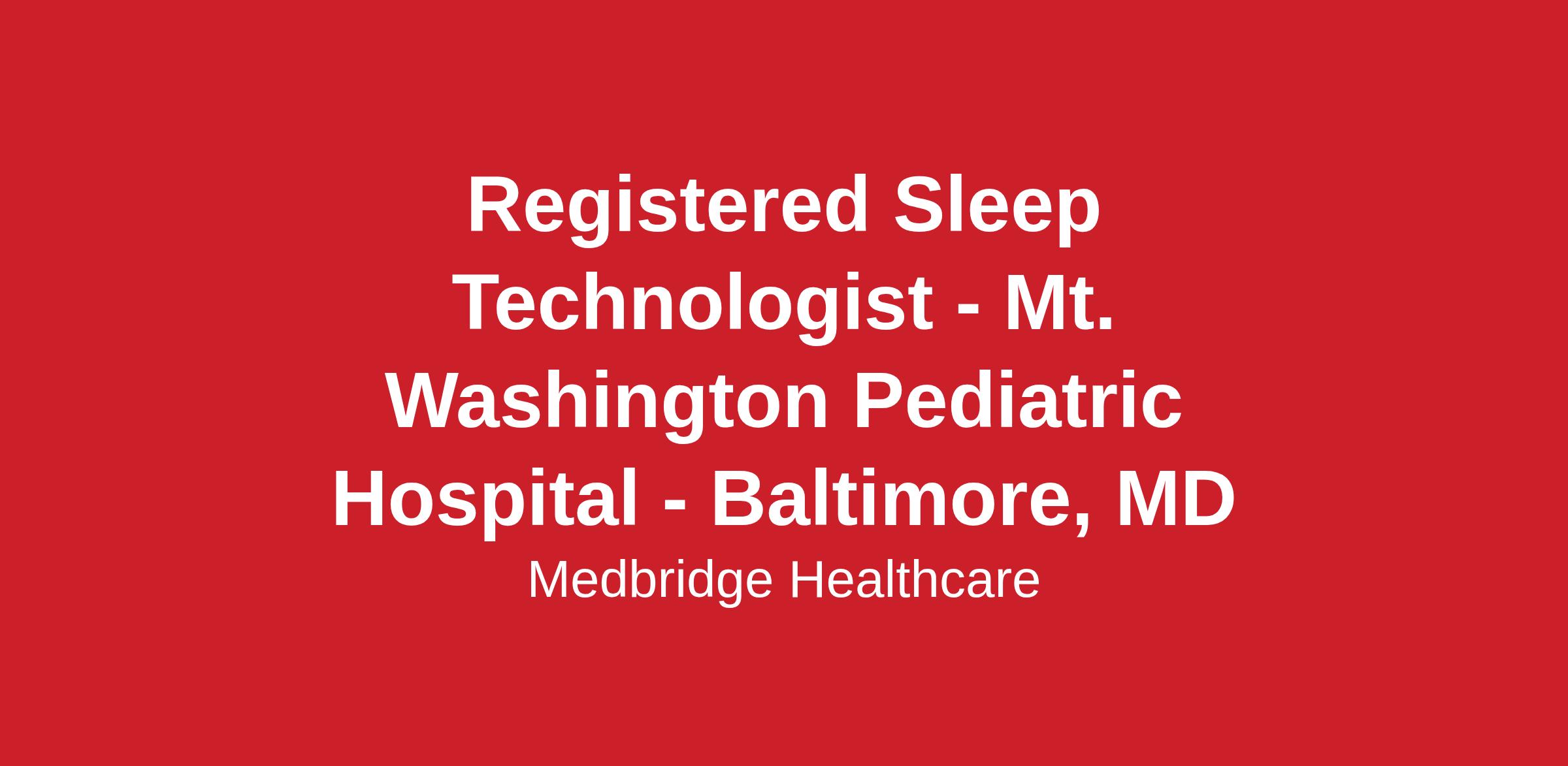 MedBridge Healthcare is seeking a Full Time experienced RPSGT or RRT to work in our Mt. Washington Pediatric Sleep Lab Location in Baltimore, MD. The position will provide sleep services 3-4 nights per week from 8:00PM-6:00AM. Competitive hourly rates available, depending on experience.