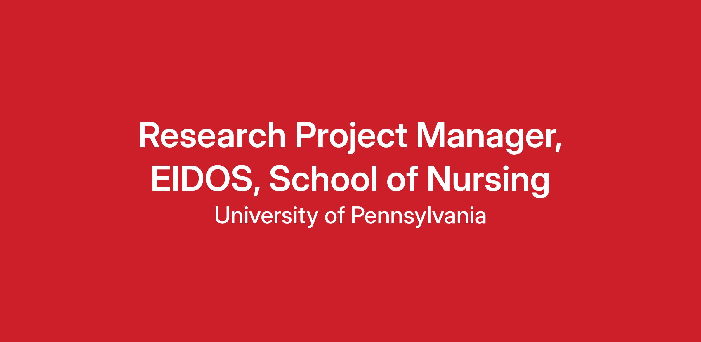 Research Project Manager, EIDOS, School of NursingJob Profile Title