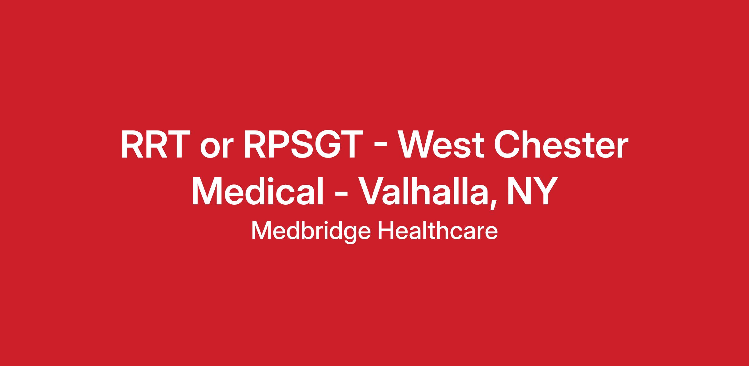 MedBridge Healthcare, LLC is seeking an experienced Full Time RPSGT to work in Valhalla, NY. The position will provide sleep services 3-4 nights per week from 8:00PM-6:00AM. Competitive hourly rates available depending on experience.