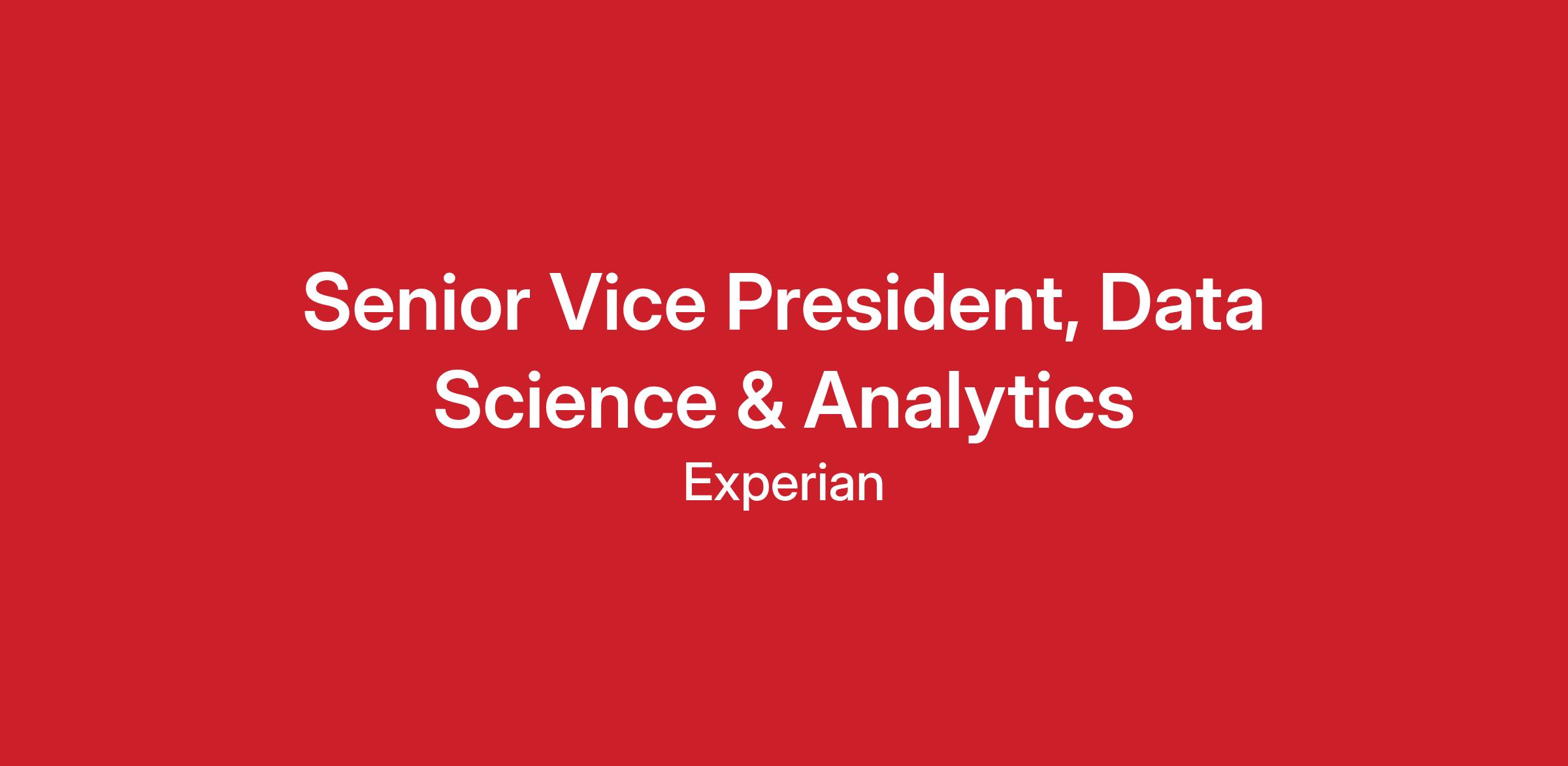 The Senior Vice President, Data Science & Analytics (North America) will have holistic responsibility for all data science and analytics functions of the Financial Services & Data business. The role reports directly to the Chief Product and Analytics Officer of Financial Services & Data, and is the catalyst for transformation within the business, helping to evolve the way Experian provides insights to support existing customers and drive innovation.