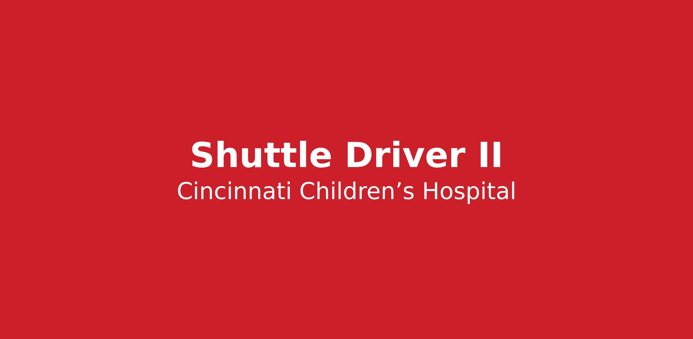 Vehicle Operation - Operate, on a scheduled basis, a CCHMC shuttle Bus or any other CCHMC vehicle. Provide transportation to and from off-site parking and between campus and off campus sites.