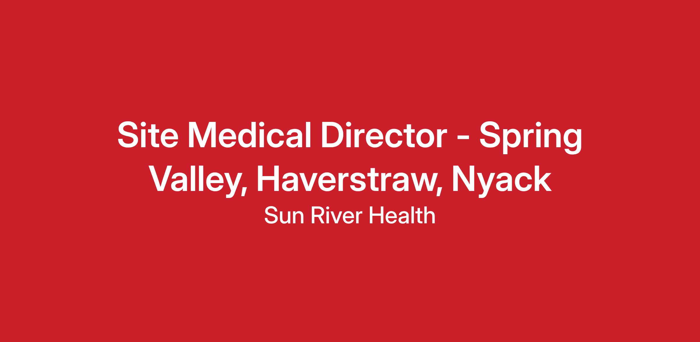 Sun River Health provides the highest quality of comprehensive primary, preventative and behavioral health services to all who see it, regardless of insurance status and ability to pay, especially for the underserved and vulnerable. Sun River Health is a Federally Qualified, Non-Profit Health Center serving communities in Suffolk, Rockland, Orange, Dutchess, Ulster, Sullivan, Columbia and Westchester County. Sun River Health is currently seeking full-time Site Medical Director to join our team supporting the Spring Valley, Haverstraw and Nyack sites. Provider will do all clinical practice at Spring Valley. Administrative duties will be at all three sites.