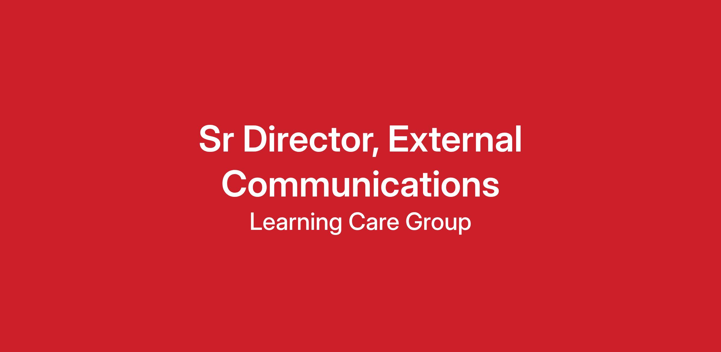 DescriptionThe Senior Director of External Communications will lead the strategy and execution of Learning Care’s external communications efforts to strengthen and protect the company’s reputation among families, educators, policymakers, industry leaders, and the media.