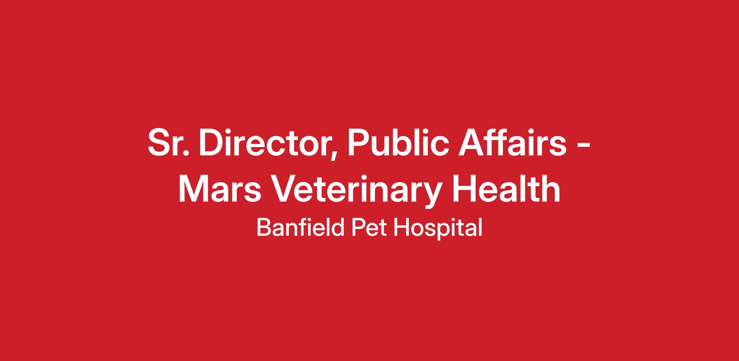 Sr. Director, Public Affairs - Mars Veterinary HealthLOCATION & SCHEDULE: