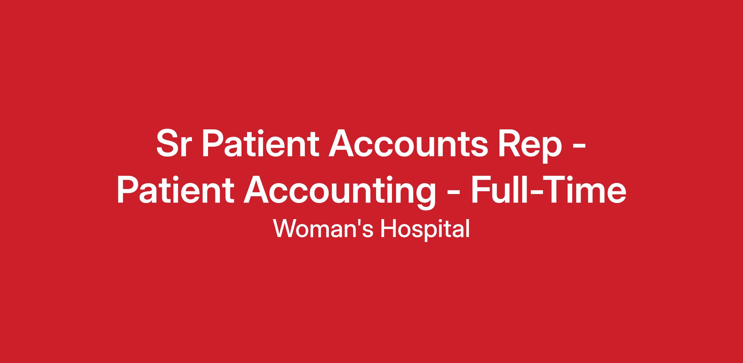 The Sr. Patient Accounts Rep reviews assigned A/R to analyze and resolve a variety of complex billing issues. Works closely with doctors and their staff, governmental agencies, managed care companies, third-party insurance companies, and various departments/hospital clinics to resolve billing and reimbursement issues. Needs to understand the Health Information System data flow to reconcile system adjustments applied to patient bill. Responsible for understanding all aspects of Medicaid/Medicare billing to file claims with appropriate revenue, CPT4, and HCPCS codes. Takes appropriate action steps to resolve patient, coworker, management requests and revise corrected and adjusted claims. Responsible for reviewing and making necessary contractual adjustments to patient accounts according to Medicaid/Medicare payment methodology. Responsible for working assigned A/R in order to bring account closer to completion. Performs other duties as assigned by department management according to policies and procedures and the mission of Woman's Hospital.