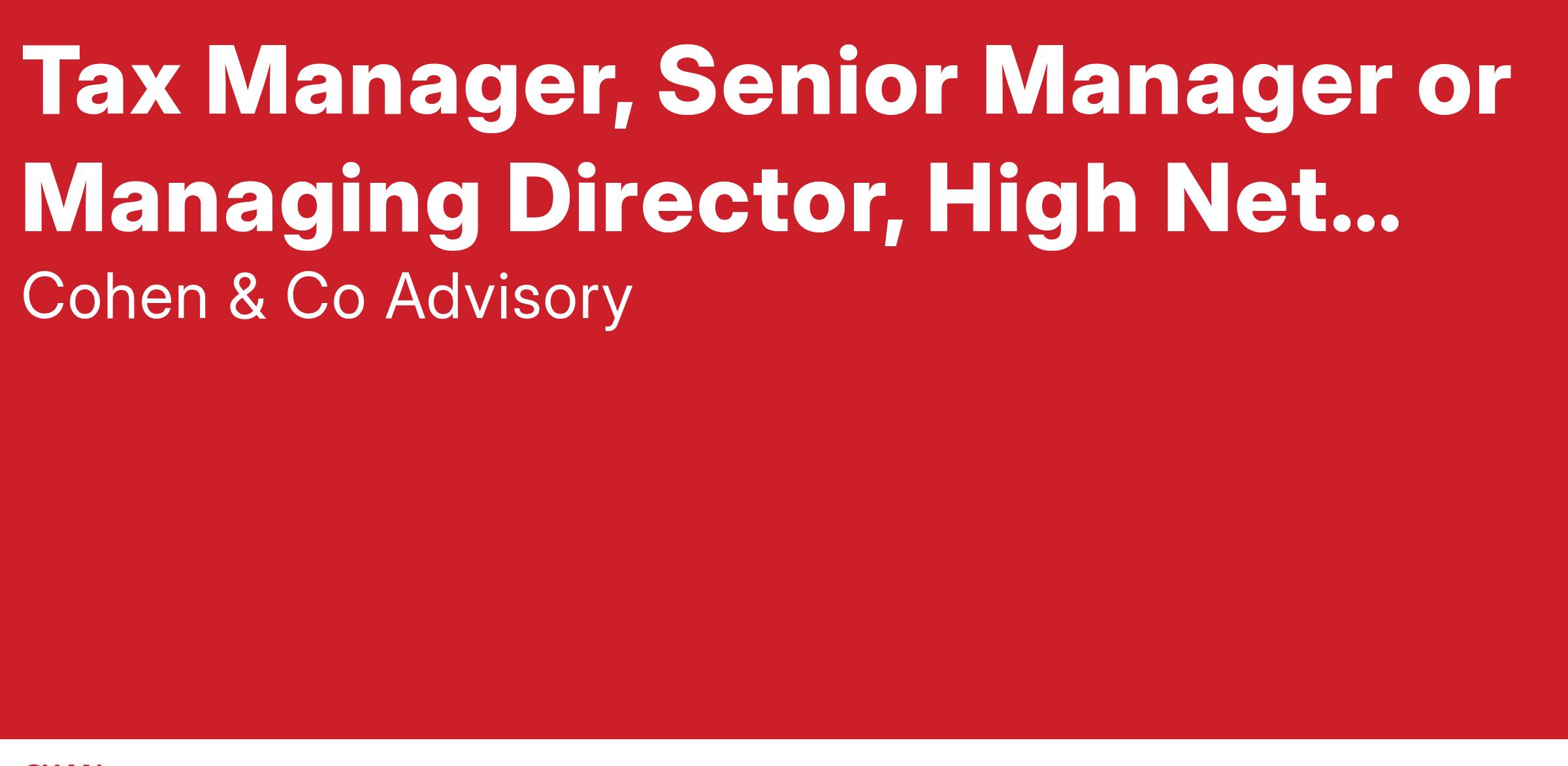 Tax Manager, Senior Manager or Managing Director, High Net Worth