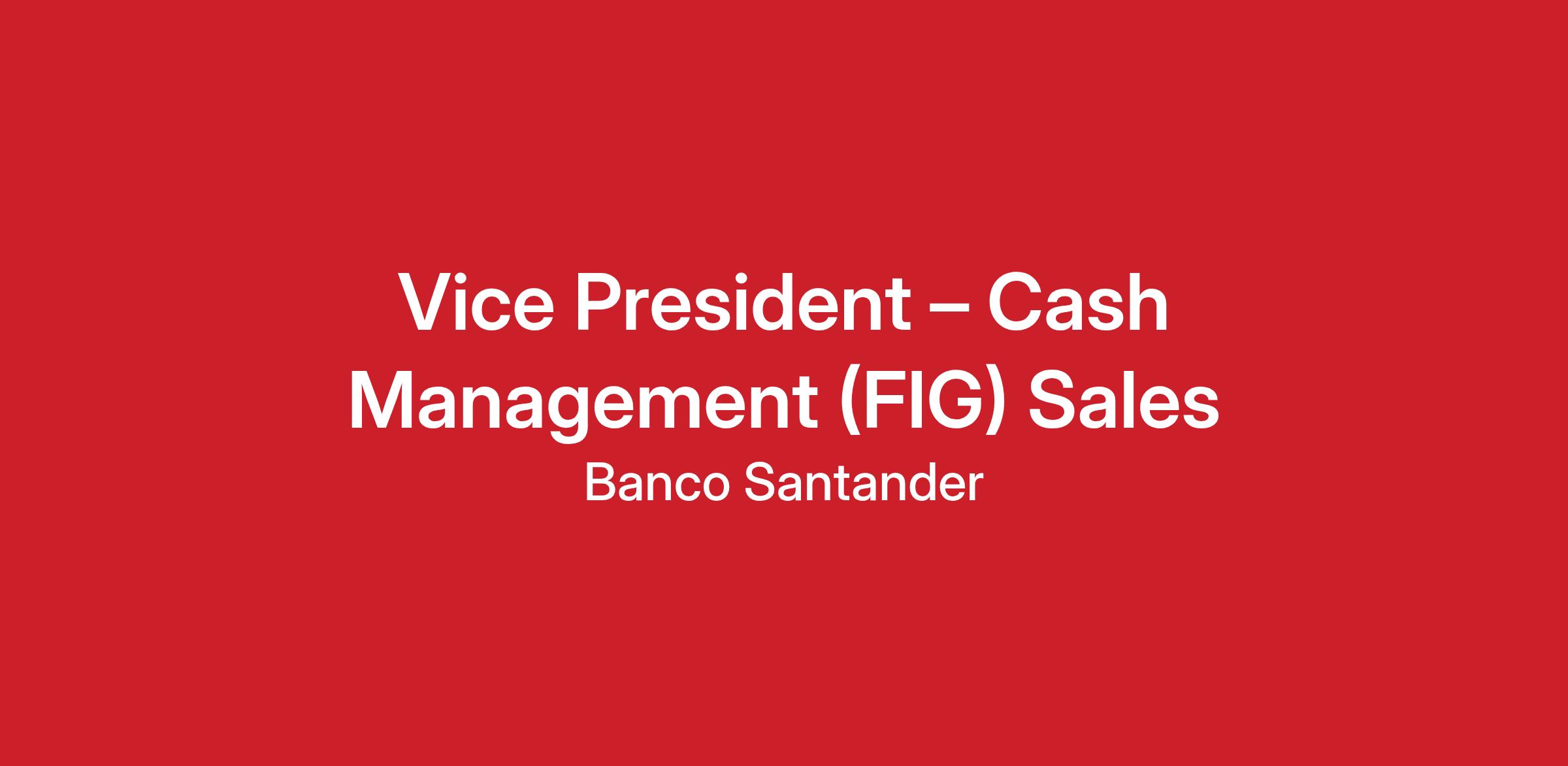 Santander Corporate & Investment Banking (SCIB) is looking for a Vice President – Cash Management Sales to lead origination and commercialization efforts across U.S. and global Financial Institutions Group (FIG) clients.