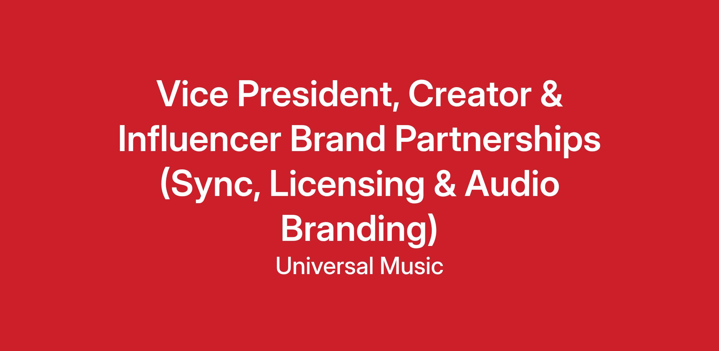 We’re hiring a VP-level leader to redefine how our music lives in culture across creators, influencers, social-first storytelling, and emerging platforms. This is a high-impact role on our Sync, Licensing & Audio Branding team, built for someone who can turn creative momentum into commercial results and meaningfully move the needle for our songwriters through world-class brand partnerships.