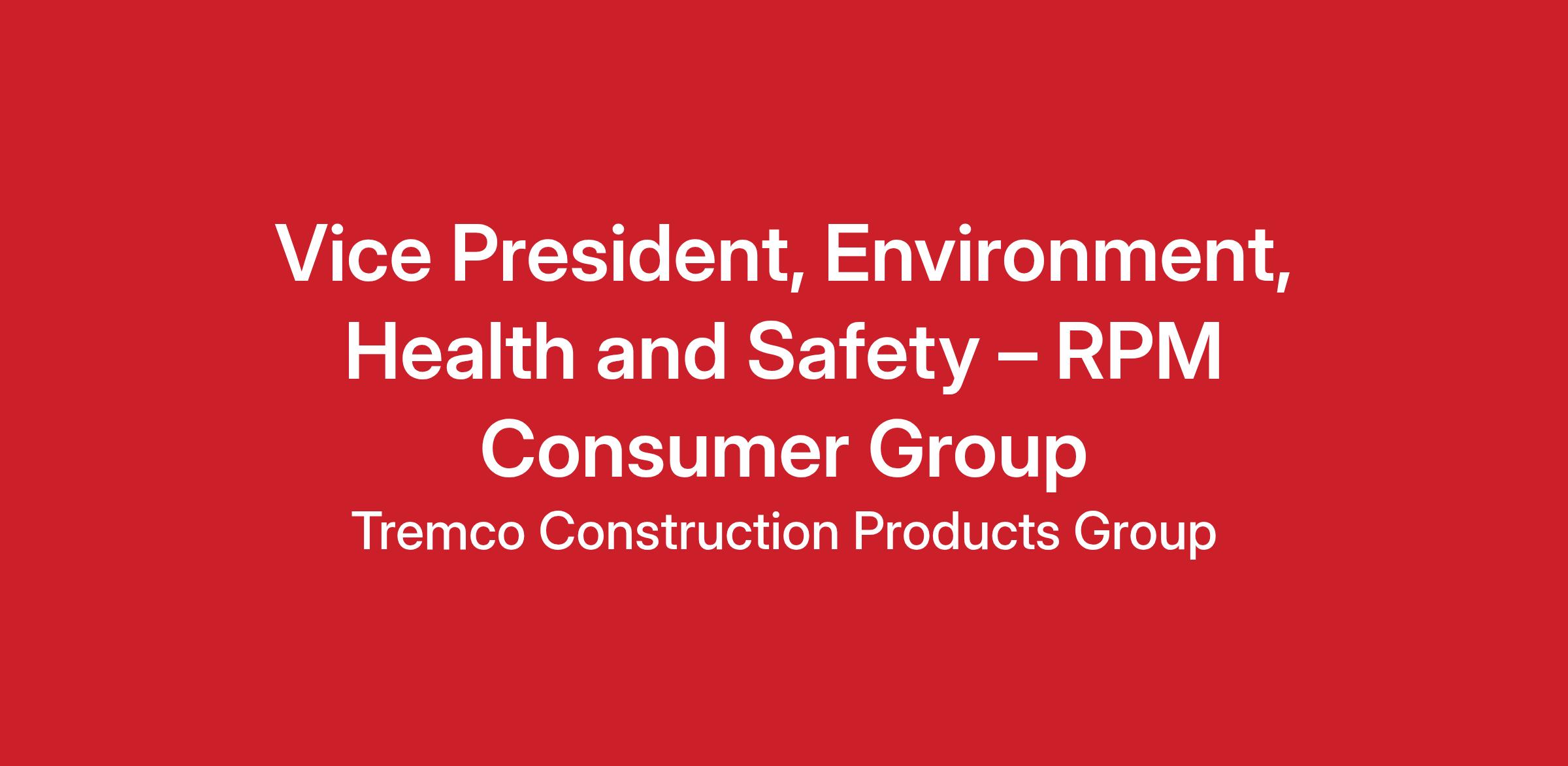 DescriptionVice President, Environment, Health and Safety – RPM Consumer Group