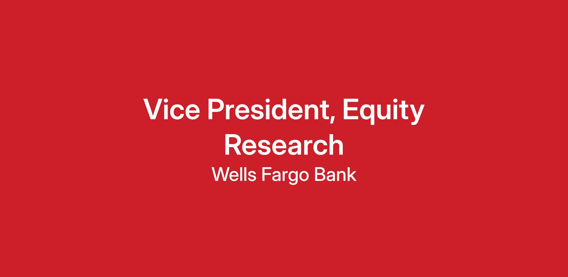 Wells Fargo is seeking a Vice President, Equity Research. In this position you will partner with the Senior Analyst; primary responsibilities include conducting the fundamental equity research process for the purpose of providing differentiated industry and stock-specific content, including building and maintaining financial estimates, maintaining financial databases, and writing reports on companies under coverage and key industry themes. Learn more about the career areas and lines of business at wellsfargojobs.com