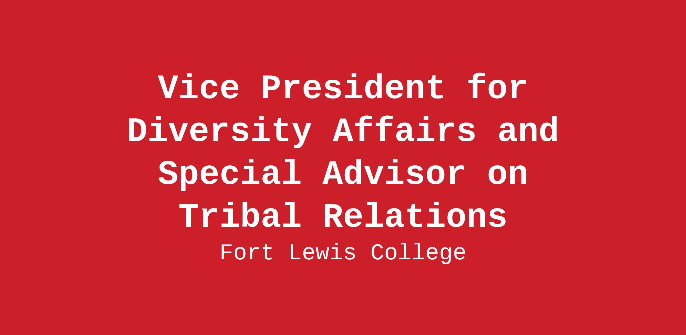 The Vice President for Diversity Affairs and Special Advisor on Tribal Relations is a transformational executive leader at Fort Lewis College. The position provides leadership to sustain and elevate diversity, promote a culture of support and belonging, and develop strategic initiatives that contribute to the success of all students, faculty, and staff. As the Special Advisor on Tribal Relations, this position will advise the President on important matters with Tribal Nations and Indigenous communities, serving as the liaison between the college and sovereign Tribal Nations.Job Description: