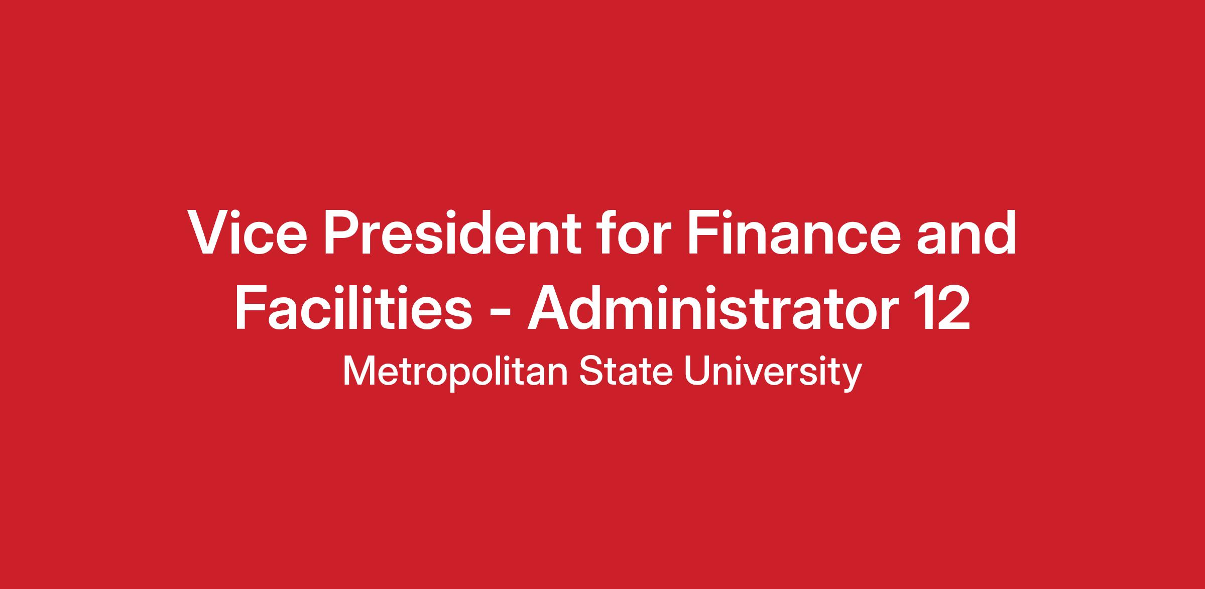 Vice President for Finance and Facilities - Administrator 12Institution: