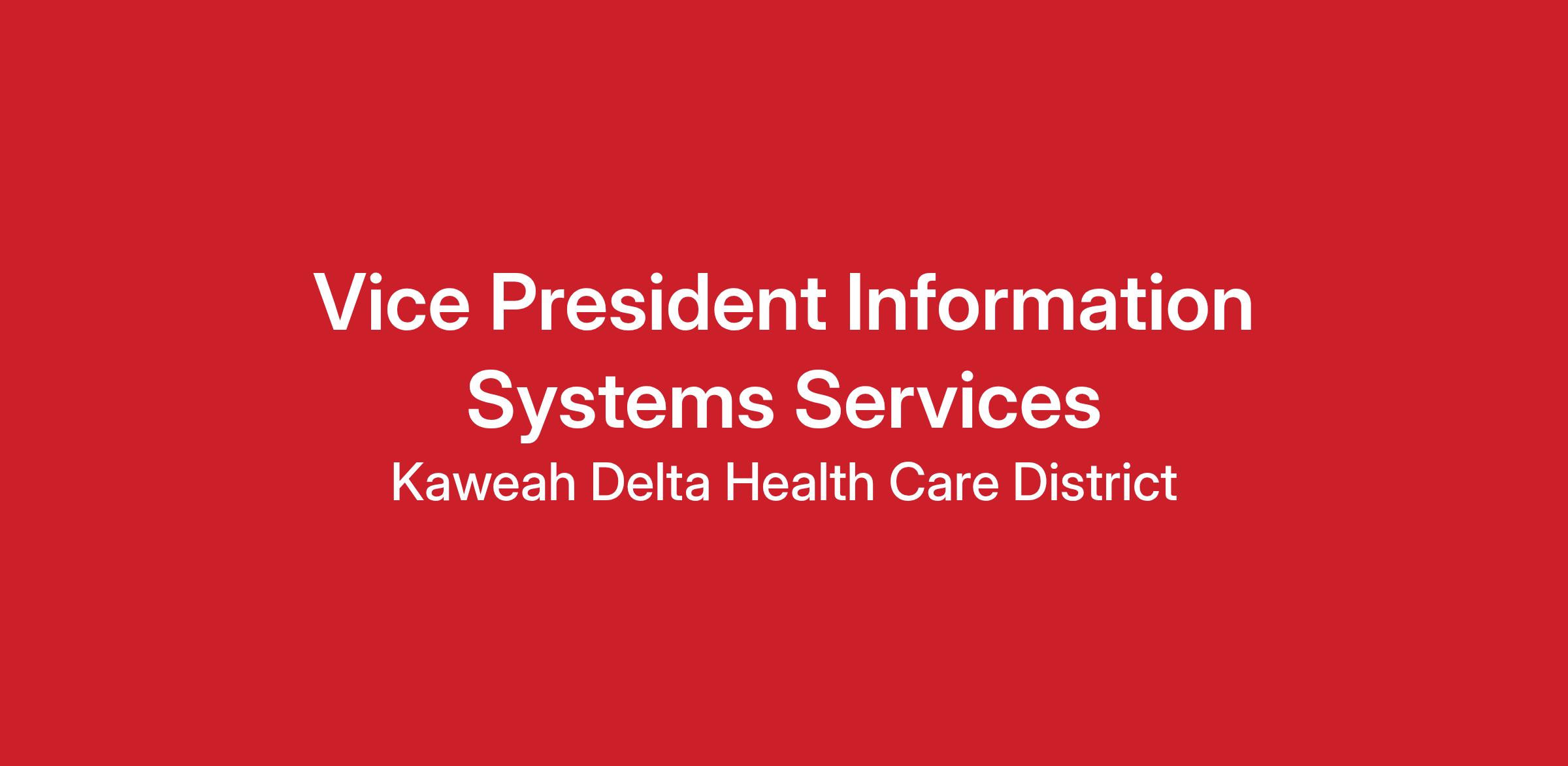 8618 Executive Team The Vice President Information Systems Services is accountable for the development and execution of strategic plan elements and the operating performance of Information Services, Health Information Management, Clinical Engineering and PBX departments for the Kaweah Health. The position is a member of the Executive Team and organizes the Board's Information Systems Steering Committee in collaboration with the Board Committee Chair.Compensation based on experience and qualifications $300,000 to $425,000