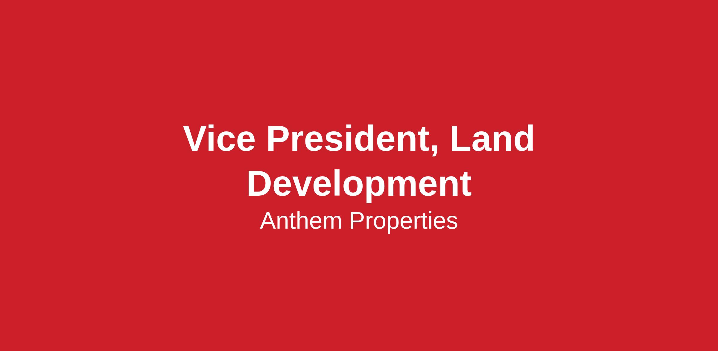 The Vice President, Land Development is a key member of the Sacramento Land Development and House Building leadership team, responsible for leading the development of land opportunities, including navigating local zoning laws, environmental regulations and city/county approval processes. The VP plays a key role in shaping the long-term growth of Anthem.