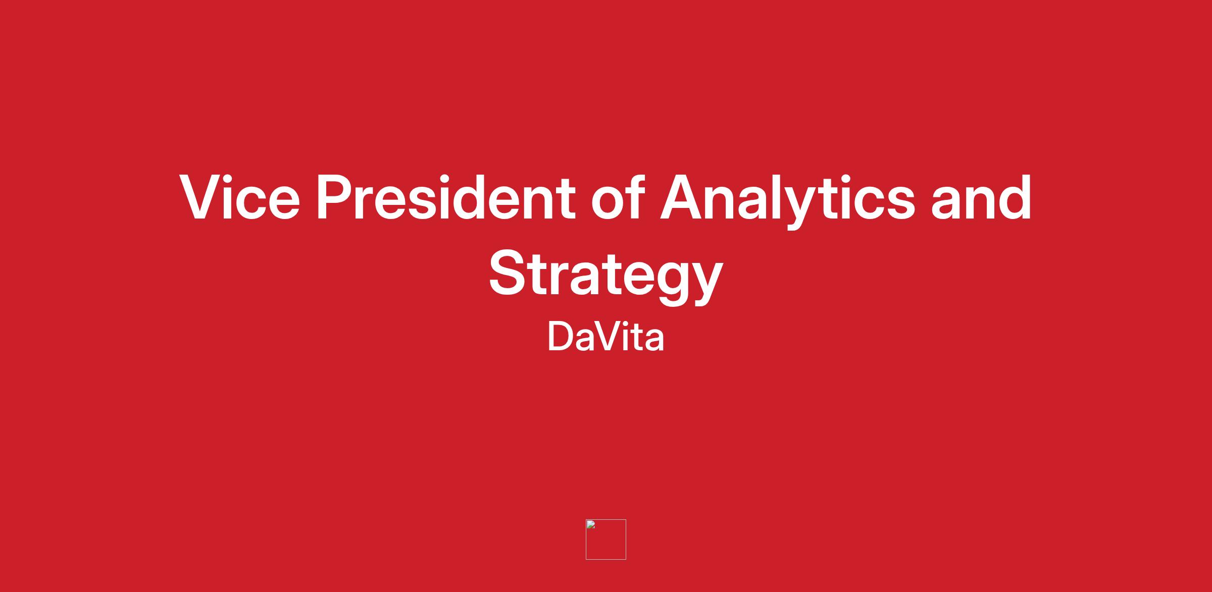 We are seeking an inspirational and strategically-minded Vice President of Analytics and Strategy, powering DaVita’s insurance and growth functions. This leader will drive operational strategy, execution, and innovation for DaVita’s admissions, hospital relationship management, and patient support and insurance teams. This executive will be a leader in shaping our long-term organizational vision and owning the execution, including navigating health insurance policy and insurance landscape changes, creating and leading transformational organic growth initiatives, and creating and fostering a special place for teammates.