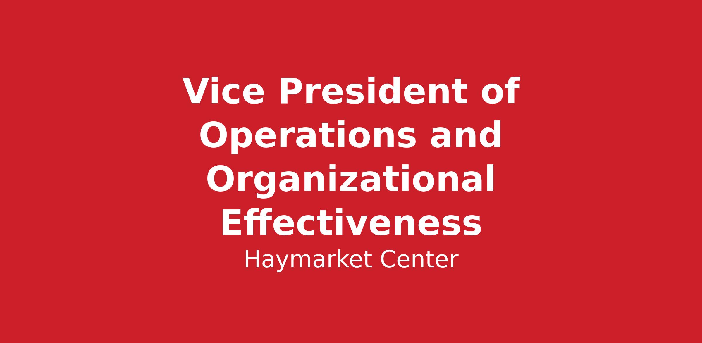 Role Summary Haymarket Center seeks a strategic and collaborative Vice President to lead operations and organizational effectiveness functions including Grants Management, Accreditation, Quality Improvement and other compliance and operational activities. This is an in-person role primarily based at Haymarket Center’s Chicago West Loop facility. The Vice President will serve on Haymarket’s dedicated and experienced leadership team and report to the CEO.