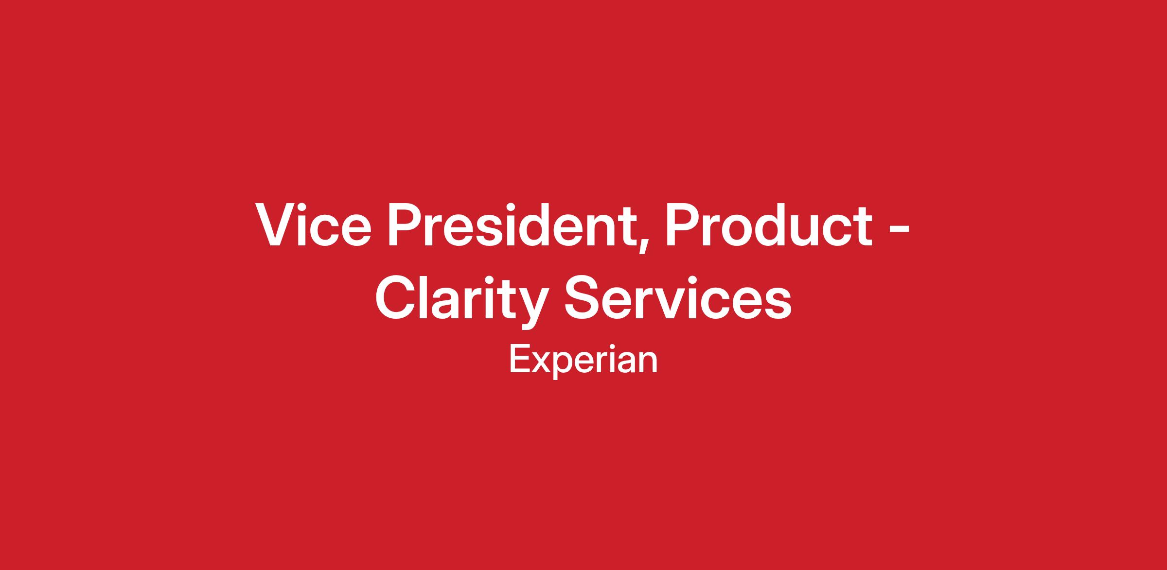 The Vice President, Product – Clarity Services is responsible for defining and executing the product strategy for Experian’s Clarity business, a critical component of our alternative data and risk solutions portfolio.